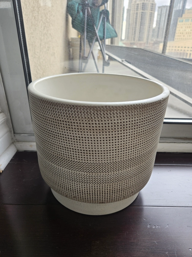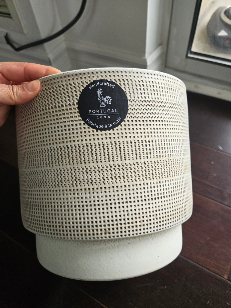Selling a lovely ceramic planter from Hand Pot. It's in great shape and ready to add some charm to your plants! It has a nice neutral colour and a unique textured design. Made in Portugal. 20cm height