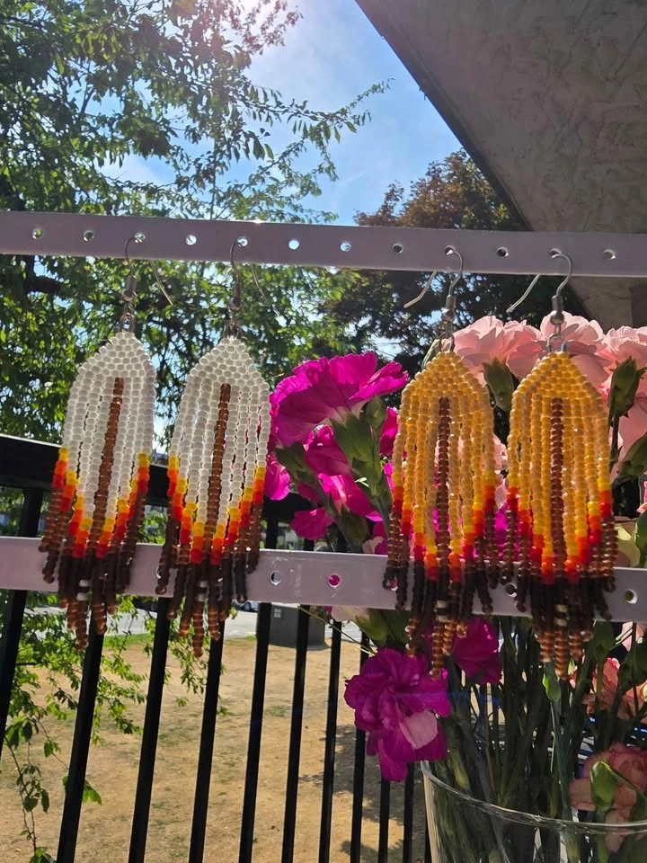 Two available, one white, one beige. One for 40, both for 60. I am an Ojibwe artist from Toronto, now living in BC @itsjessiemade on instagram for more!