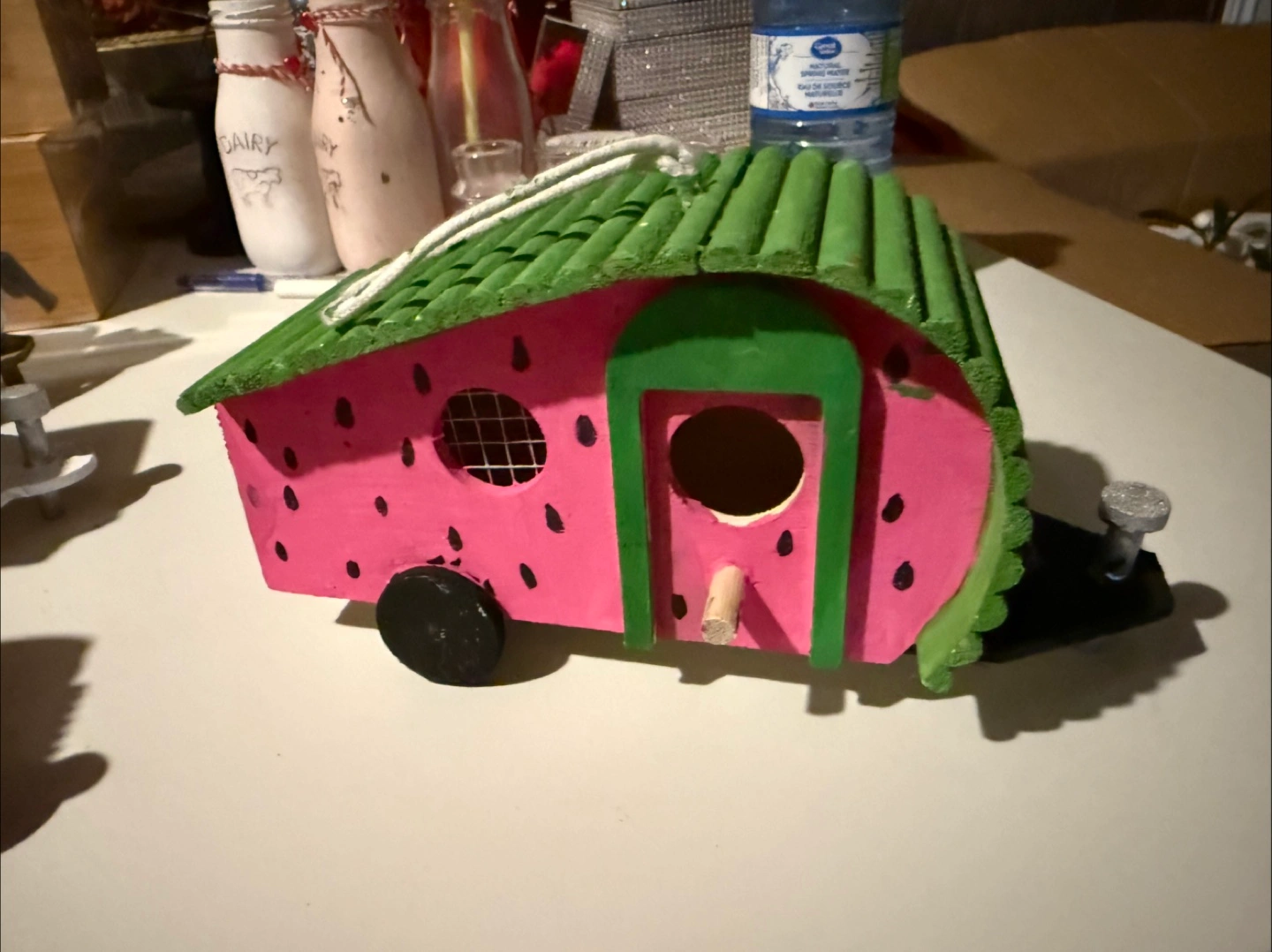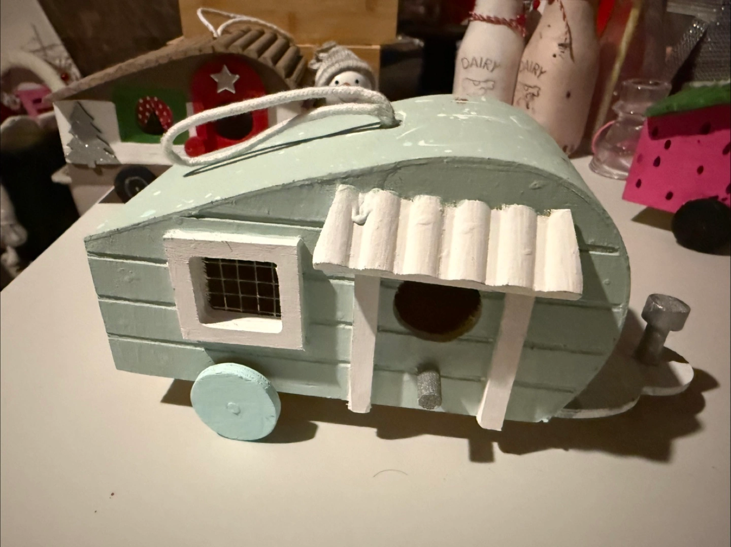 These charming, handmade caravan birdhouses are perfect for adding a touch of whimsy to your garden or home decor! Each one is uniquely designed and painted. They can be used as decorative pieces or as a cozy home for small birds. A great addition to any bird lover's collection!