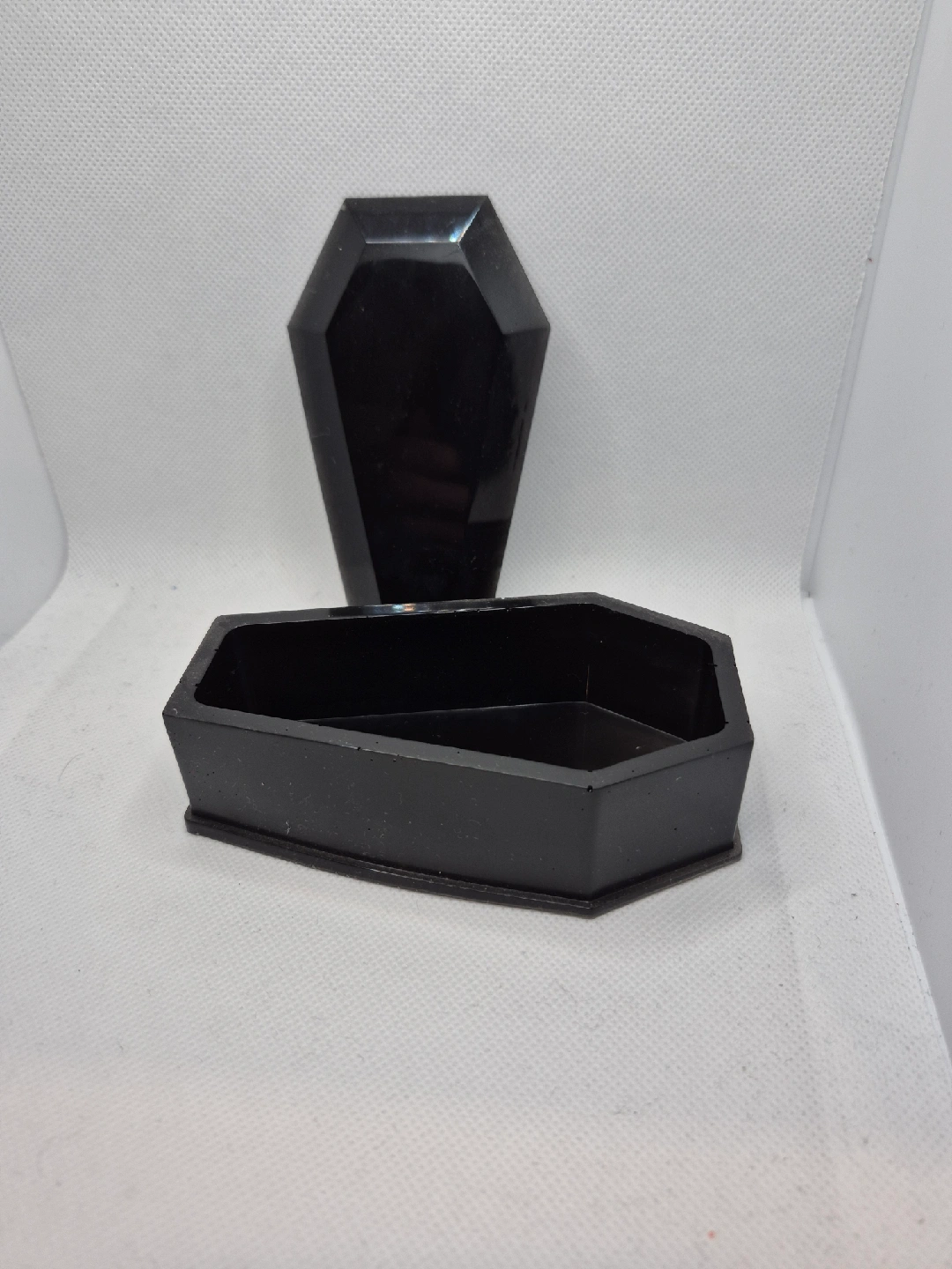 One of a kind handmade black resin coffin for sale! Great for storing stashes or whatever, makes a great display piece!