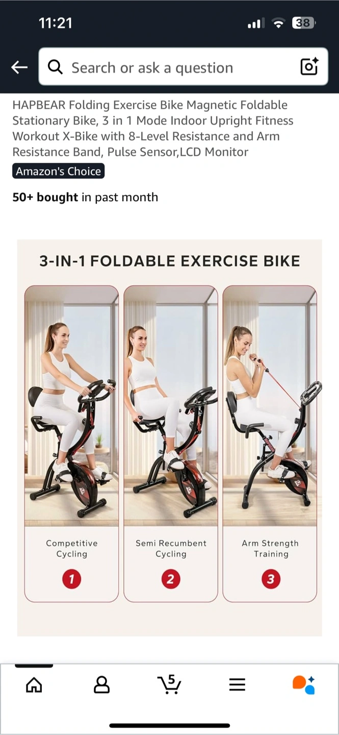 Looking to sell my HAPBEAR 3-in-1 foldable exercise bike! It's a magnetic foldable stationary bike that can be used in three different modes: upright, semi-recumbent, and as an X-bike. It also has 8 levels of resistance, an arm resistance band, a pulse sensor, and an LCD monitor. Perfect for getting a full-body workout at home! Bought it last Christmas only used it once