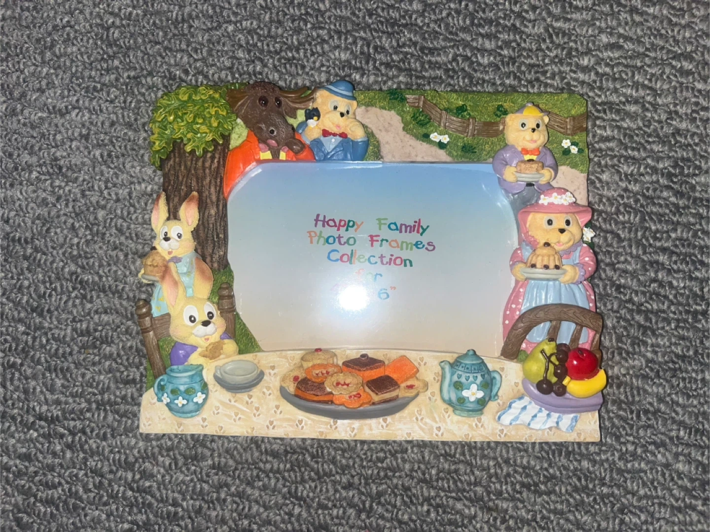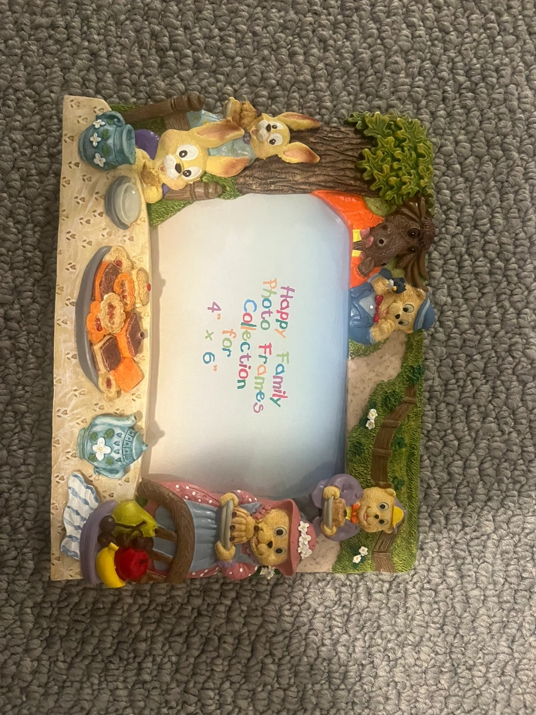 Here's a super cute Happy Family photo frame! It's designed for 4" x 6" photos and features adorable cartoon characters and a hand-painted design