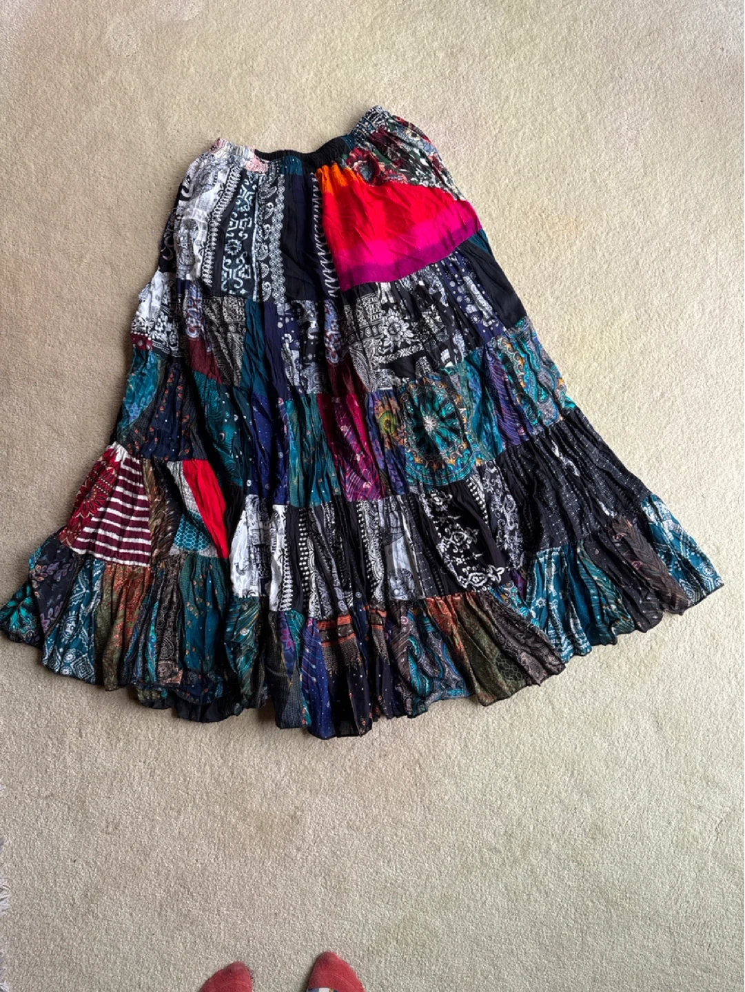 This is a fun and colourful patchwork skirt from Harempants Plus Collection! It's a unique piece that would add a pop of colour to any outfit. It's in great condition and ready for a new home! Brand new, I accidentally bought a large size. 14” (36 cm) elastic waist
