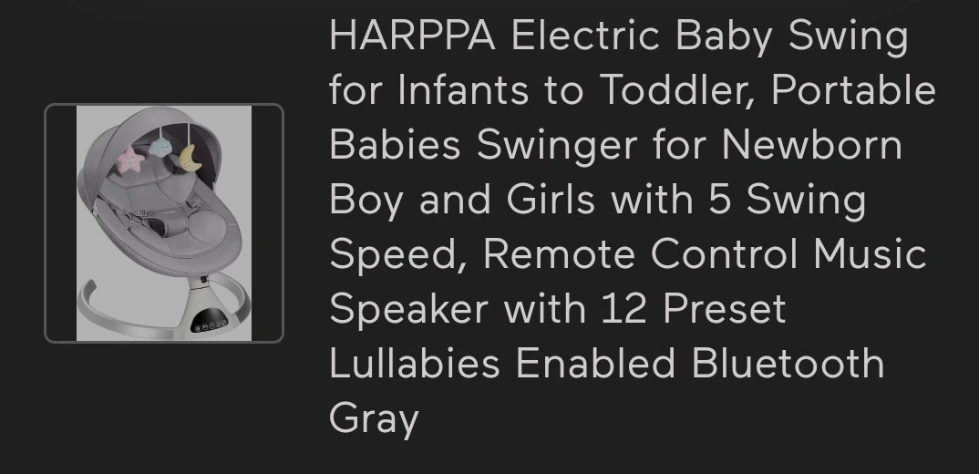 HARPPA Electric Baby Swing - Portable, Grey