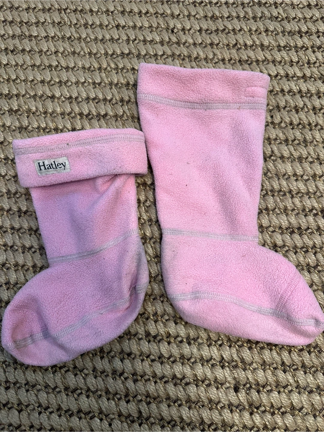 Keep your little one's feet cozy with these adorable Hatley fleece socks! They are a soft pink colour and are a size S/P (9-10). Made of 100% polyester, they're perfect for keeping those little toes warm on chilly days