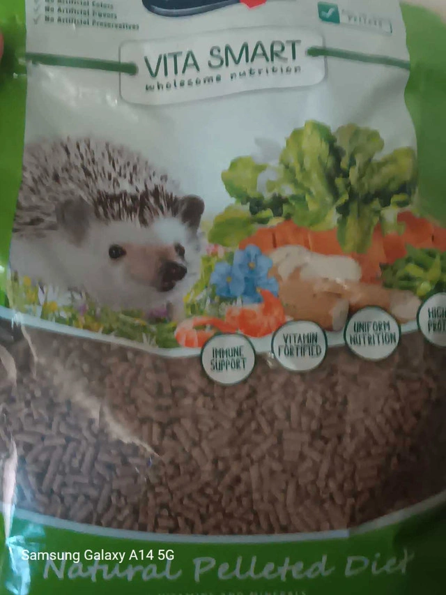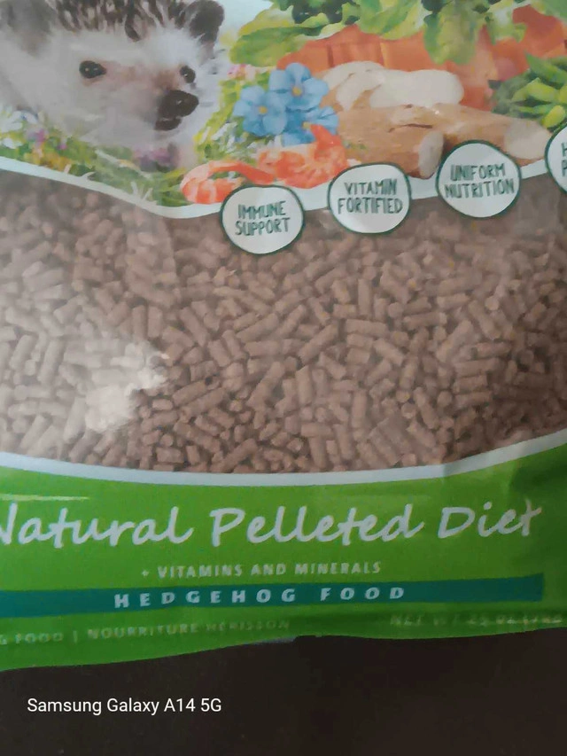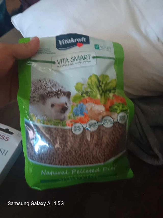This is a bag of Hedgehog food. Keep your prickly friend happy with this blend of nutrients. It's in excellent condition, ready to keep your little buddy healthy and thriving. Time to make your hedgehog's day! And yes, if you're seeing this, it's available!