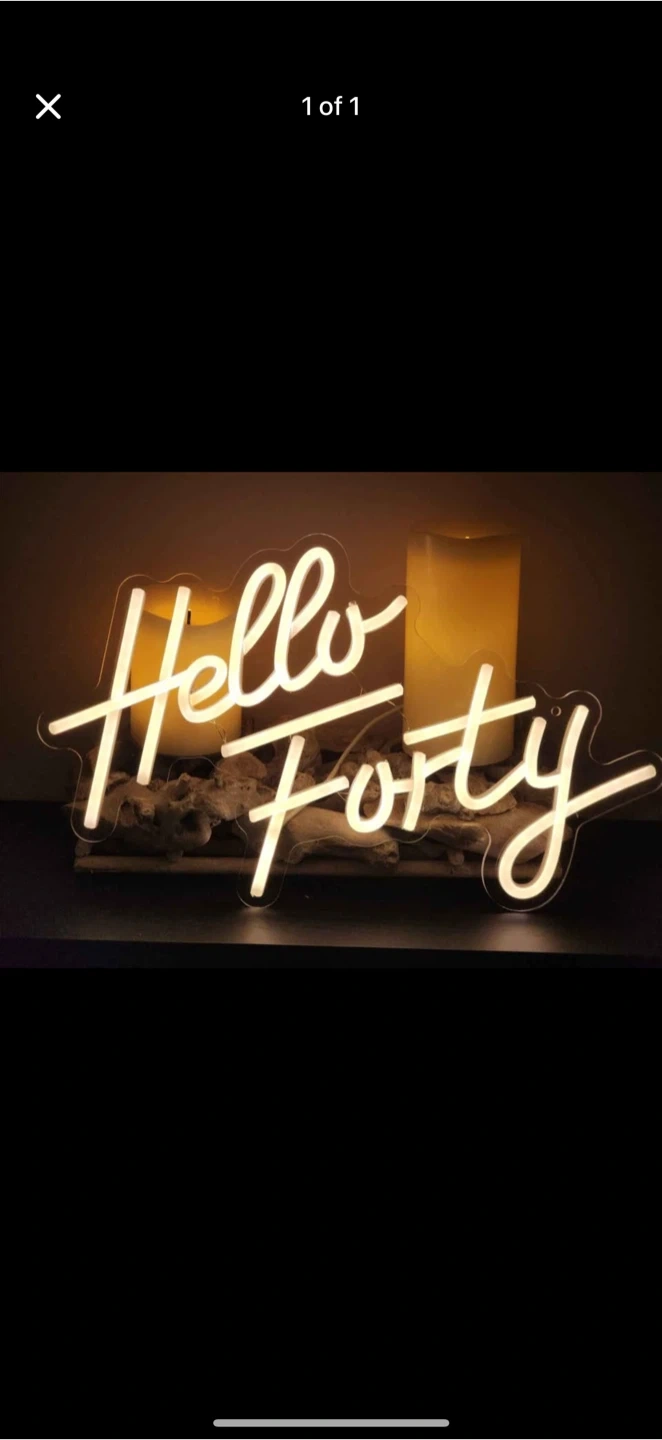 Selling a "Hello Forty" neon sign! It's in great condition and would be perfect for a 40th birthday celebration or as a fun piece of decor