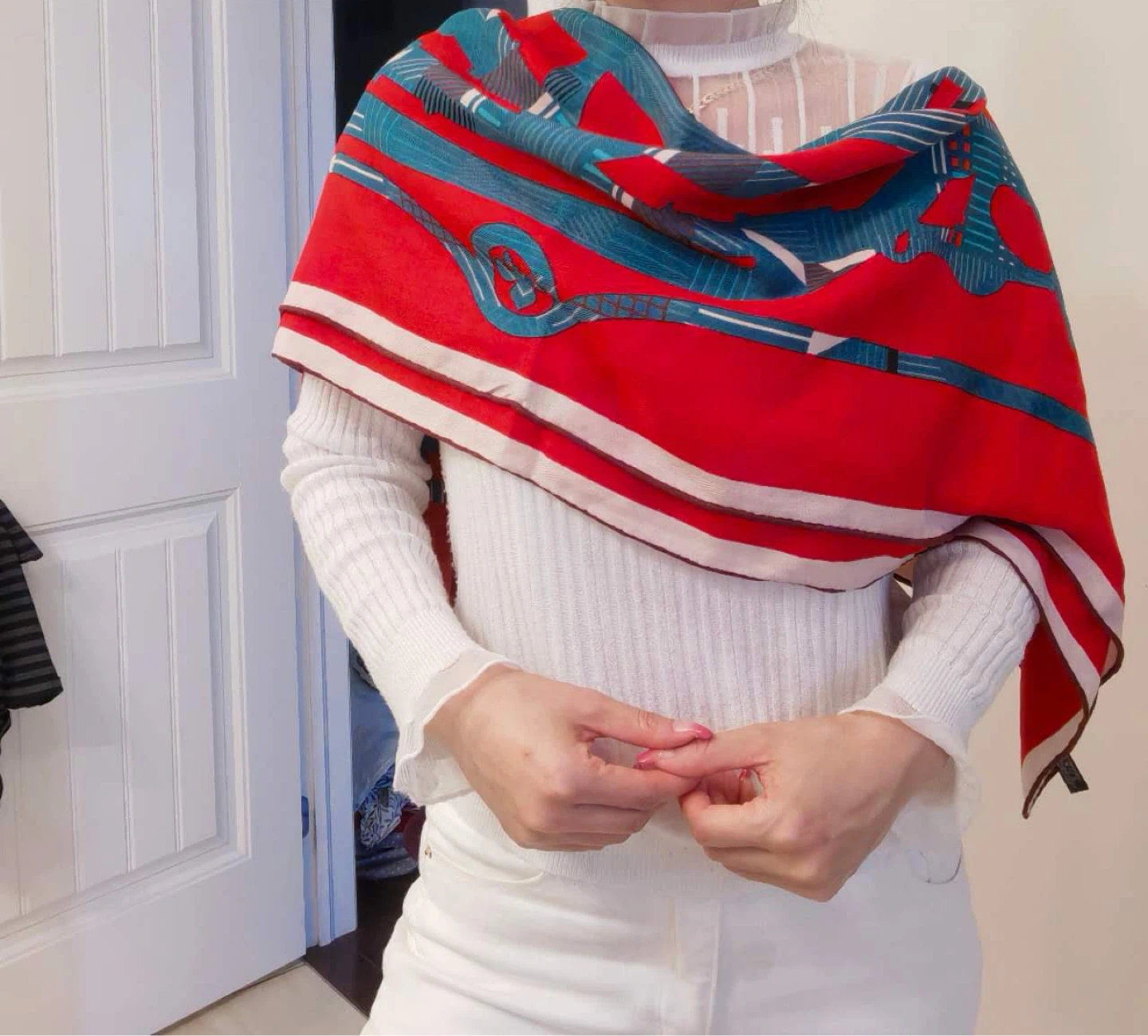 Beautiful Hermès silk scarf with vibrant colours and a unique design. It's in excellent condition and ready to add a touch of elegance to your wardrobe. The material is silk, and it feels lovely to wear!