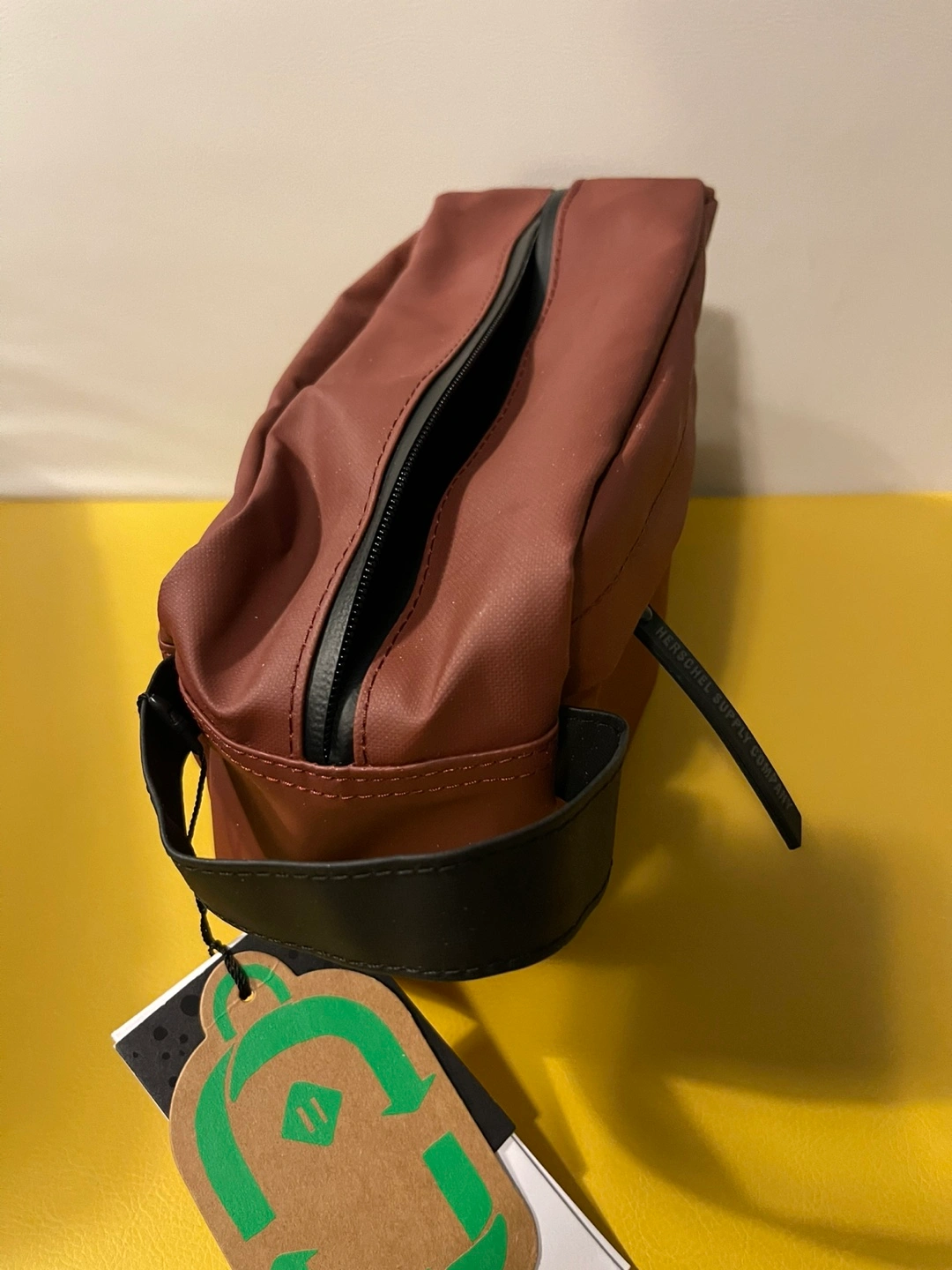 New with tag! Waterproof burgundy wash bag. Features a zipper closure and a convenient carry handle. Perfect for travel. Capacity: 5L