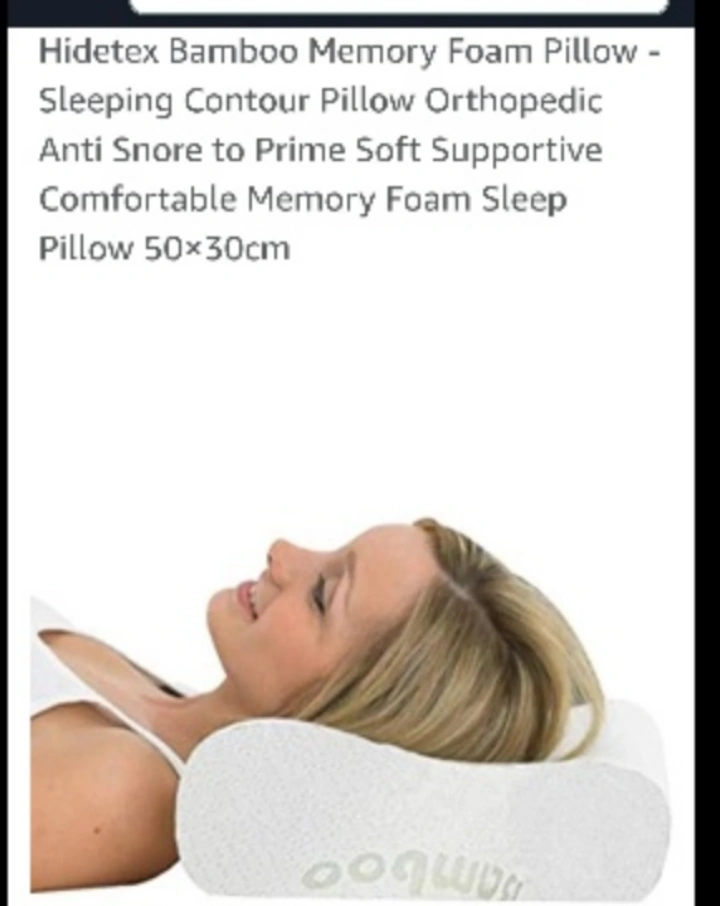 Selling a Hidetex Bamboo Memory Foam Pillow! It's a sleeping contour pillow designed to be orthopedic and anti-snore. It's made of memory foam and measures 50x30cm. It's soft, supportive, and comfortable for a good night's sleep new retail 72.98+