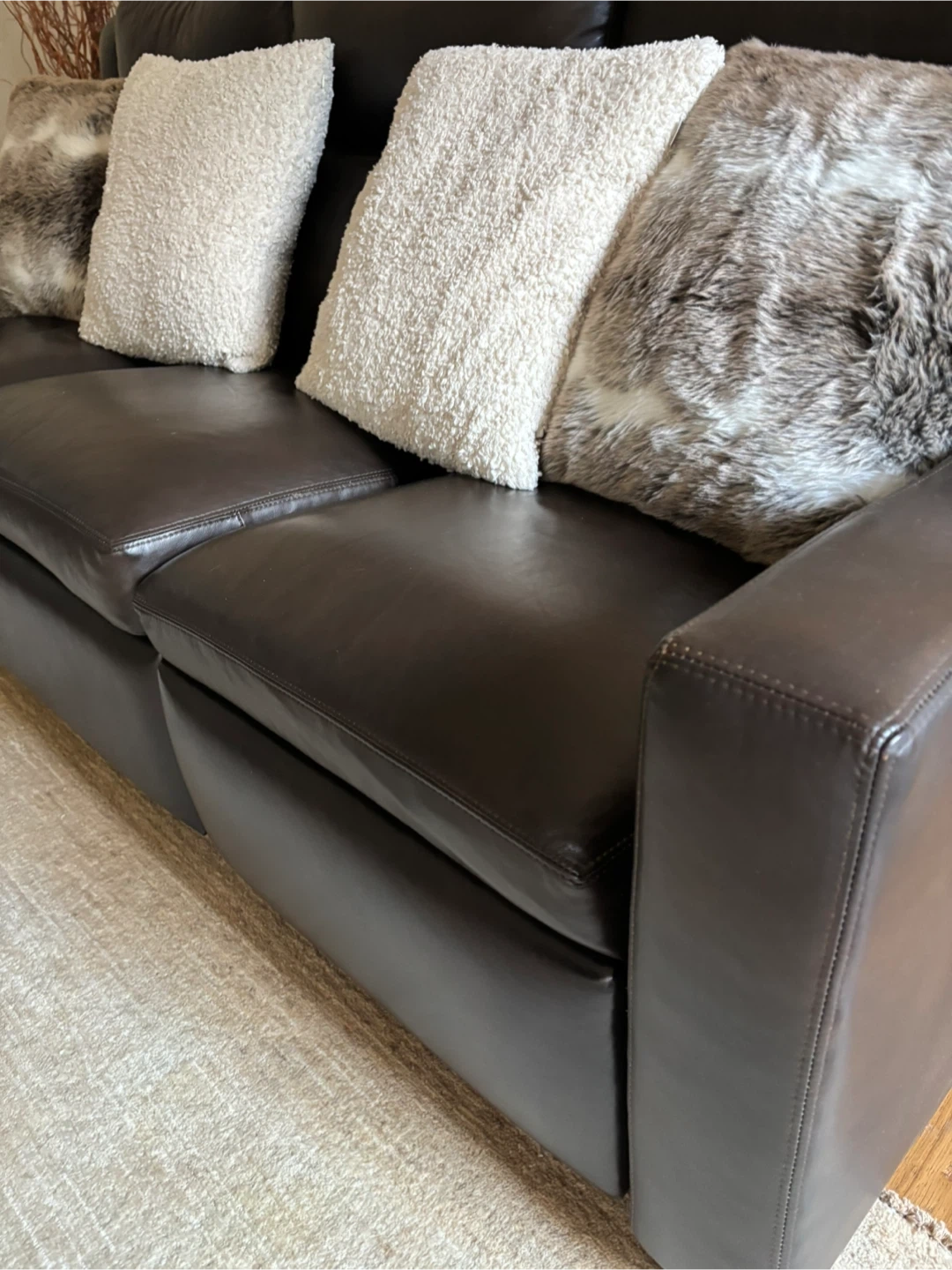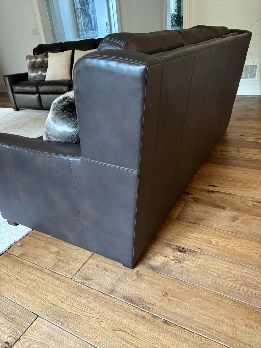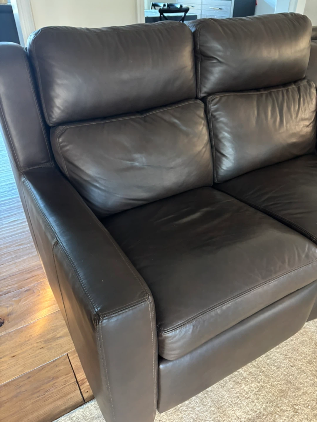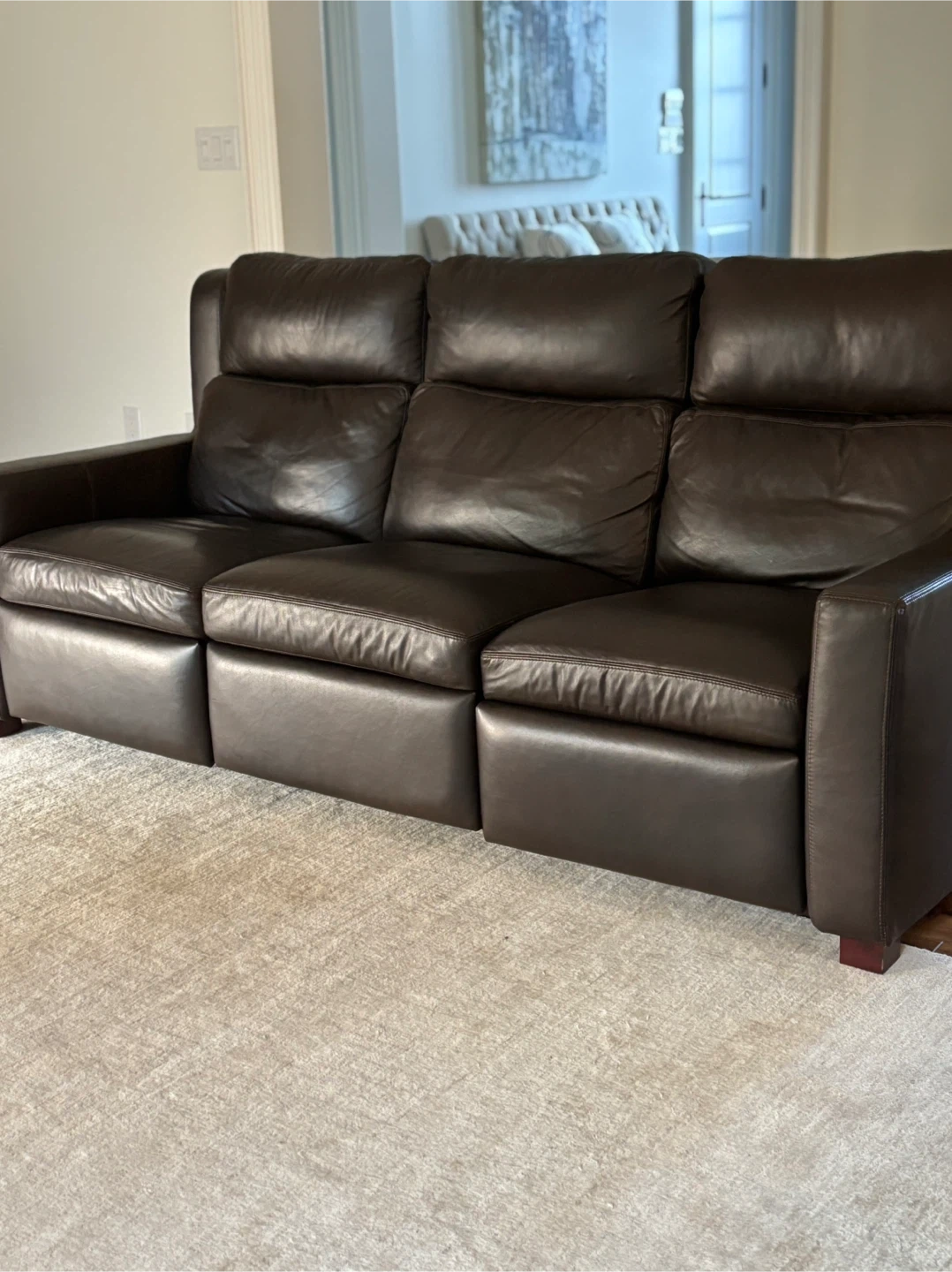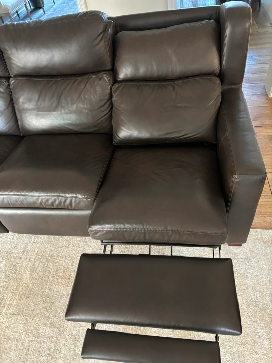 HIGH END CUSTOM MADE POWER RECLINERS RECLINE FULLY AGAINST A WALL UPGRADED LEATHER HEADCRESTS RECLINE MADE BY CRITELLI FURNITURE IN ST CATHERINES