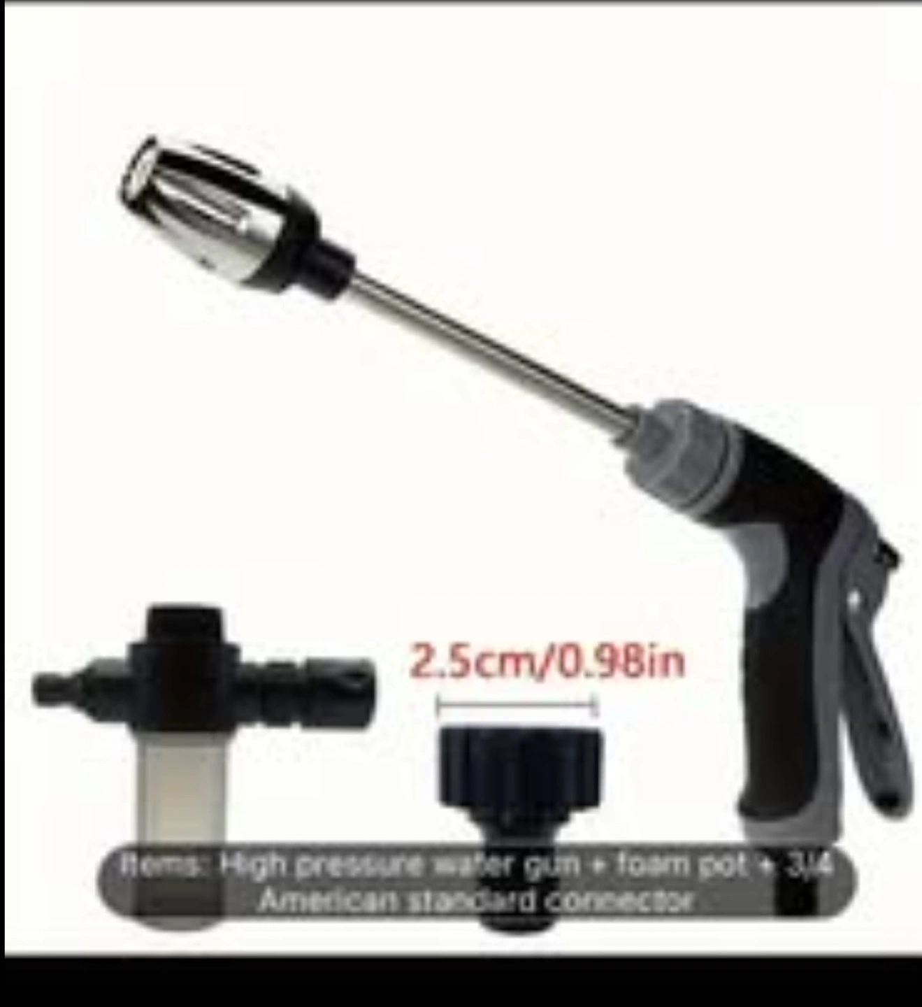 Durable water gun, features adjustable spray, electroplating gun head, stainless steel barrel, anti-slip frame, thickened handle, and quick connector. Perfect for watering plants or cleaning. 1pc High-pressure Car Cleaning Water Gun, With Adjustable High-pressure Nozzle, Spray Gun, Garden Irrigation, And Spray Outlet Bracket