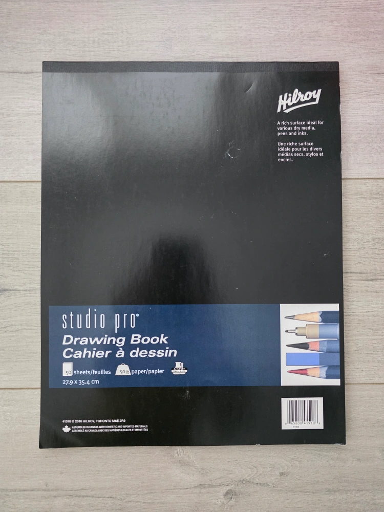 Selling a Hilroy Studio Pro drawing book. It has 50 sheets of paper, perfect for all your drawing needs! The book measures 27.9 x 35.4 cm. Great for pencils, pens, and inks. Unused, but scuffed on front cover - like new