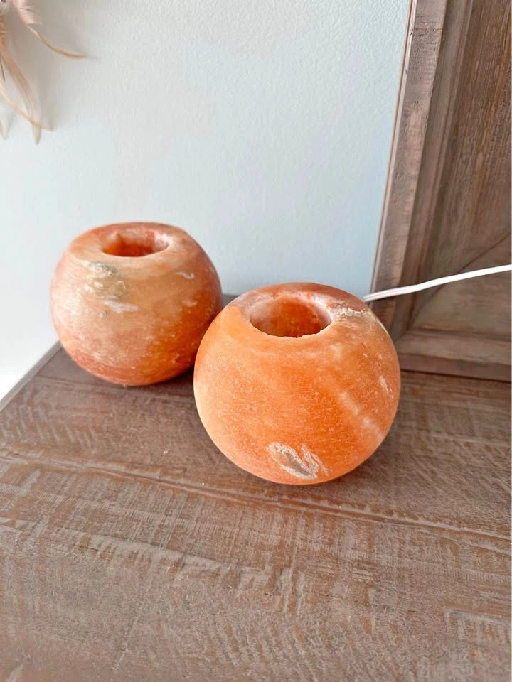 Beautiful set of 2 authentic Himalayan salt tealight holders. Each piece is carved from natural pink Himalayan salt, giving off a warm, soothing glow when lit. Perfect for creating a calming ambiance in your living room, bedroom, or meditation space. • Hand-carved, unique natural variations • Fits standard tealight candles • Believed to promote relaxation and purify the air