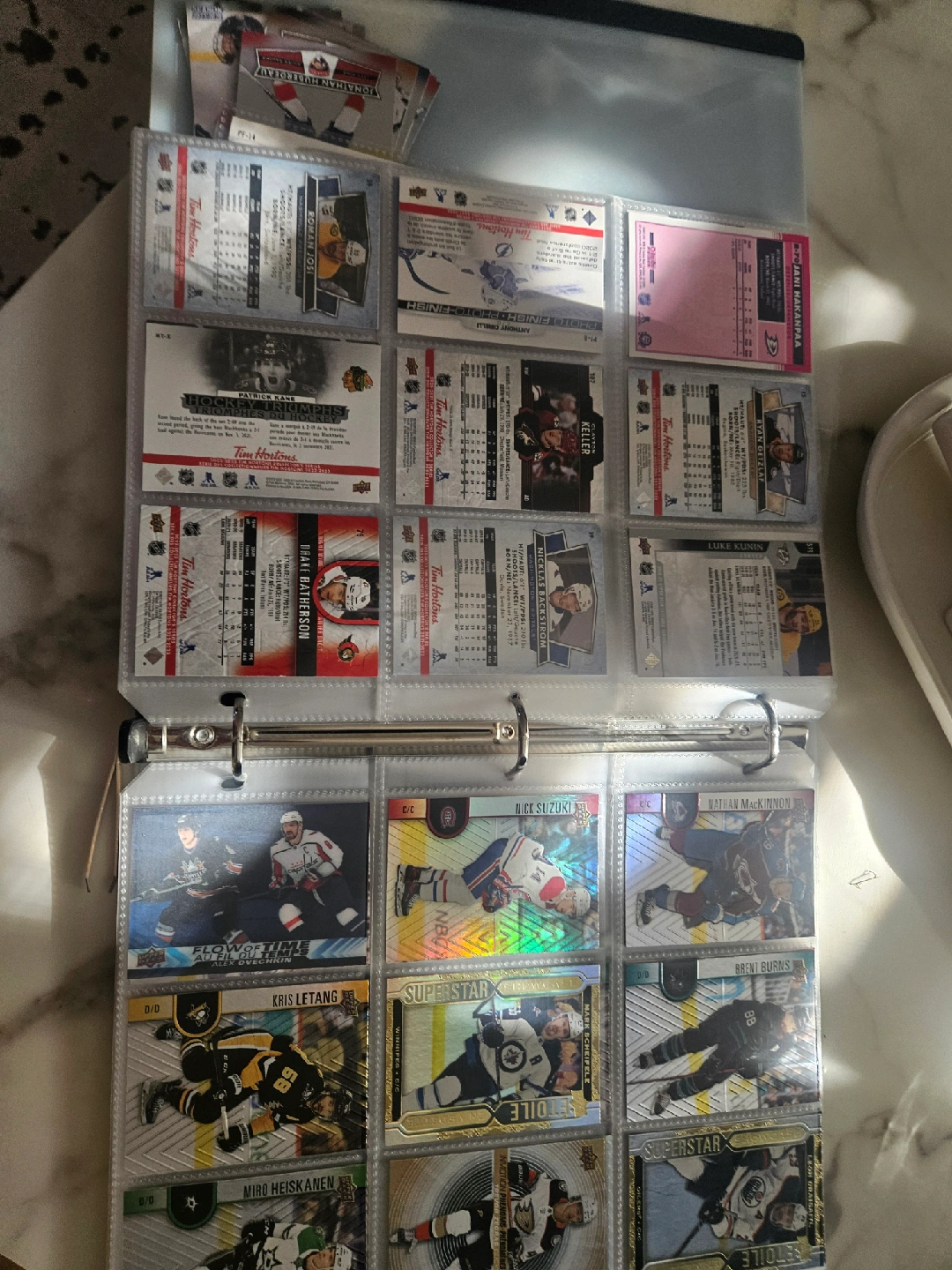 Selling a binder full of hockey cards! Great for any hockey fan or collector looking to expand their collection. Cards feature various players and teams