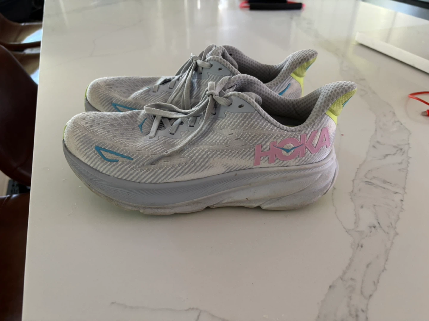Selling a pair of Hoka Clifton 8 women's running shoes in size 8D. They are in amazing condition and ready for a new home. These are super comfy and great for running or walking! My daughter used them for less than a week and they were too small.