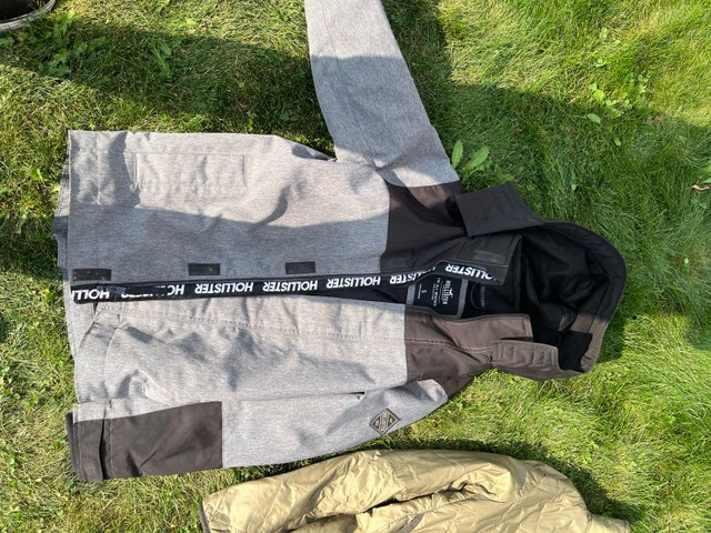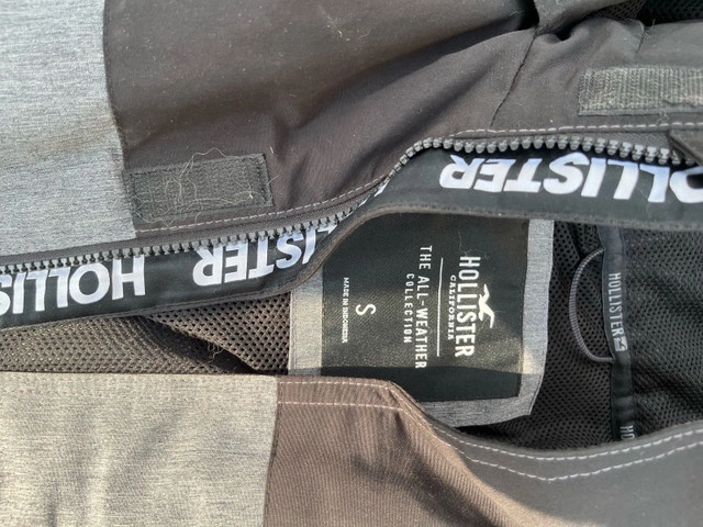 This is a Hollister all-weather jacket, perfect for those transitional seasons! It's a size small and features a stylish colour-blocked design. This jacket is used, but it is still in good condition, ready to keep you cozy and dry. * Brand: Hollister * Size: Small * Colour: Gray/Black * Style: All-weather jacket I'm pricing this jacket at $35, a great deal for a stylish and functional piece. If the ad's up, it's up for grabs!