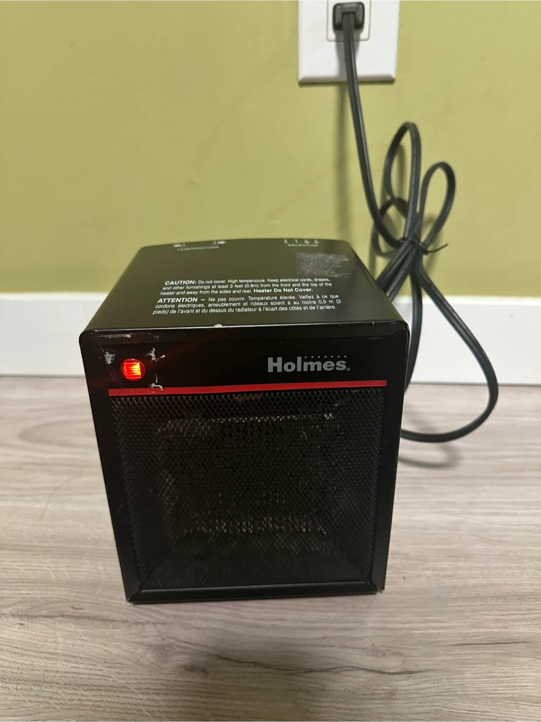 Selling a Holmes personal space heater. It's a compact size, perfect for a small room or office. It has adjustable temperature settings and a selector for heat levels. Model number is HPH3070-CN. It's 120V, 60Hz, and 1500W AC only Good working condition. Warm up your room very fast!