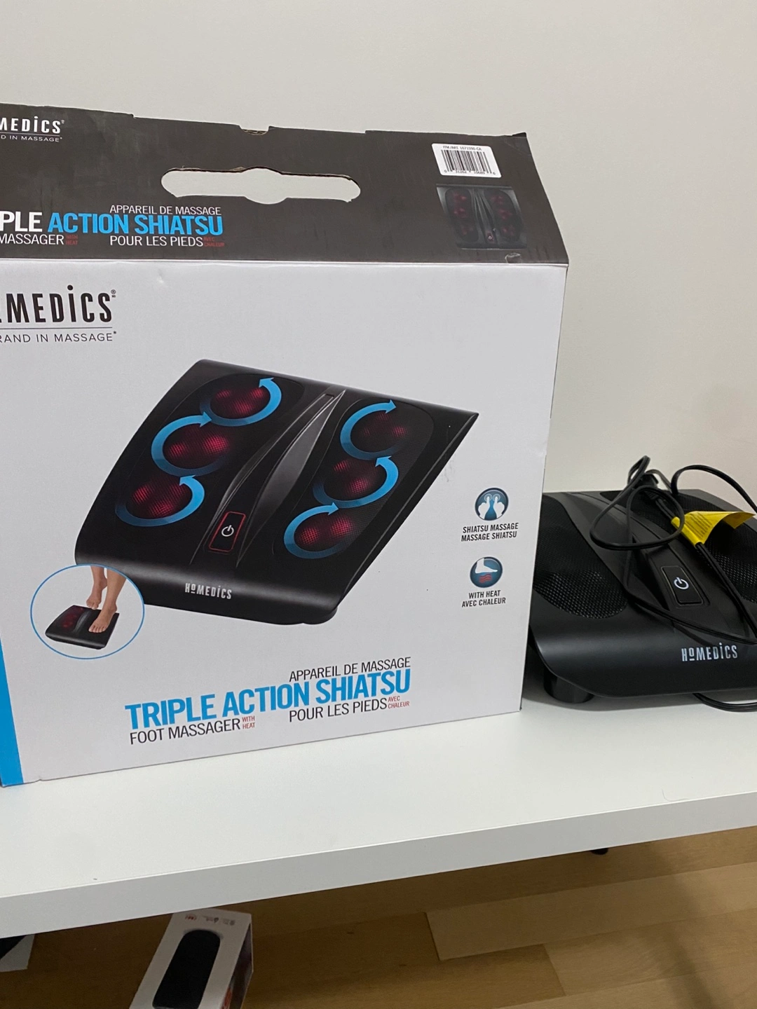 I'm selling a Homedics Triple Action Shiatsu Foot Massager! It's in great condition and comes with the original box. Treat your feet to a relaxing massage anytime you want