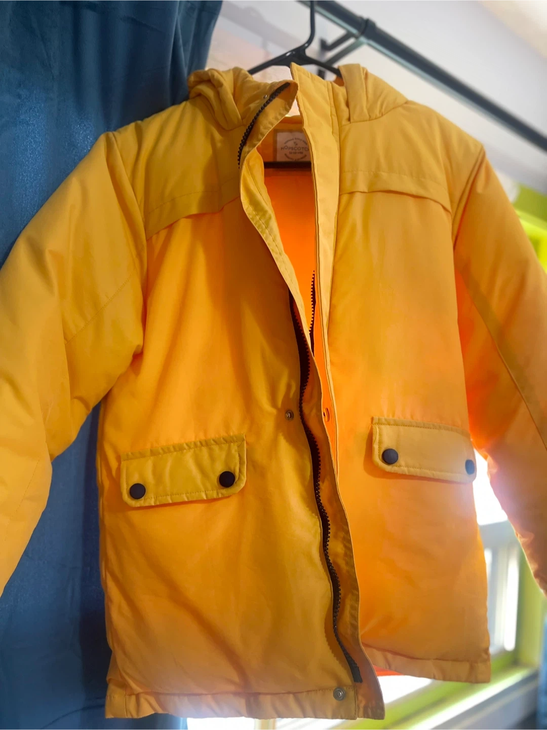 Selling a bright yellow Hopscotch brand kids puffer jacket. It's in great condition and perfect for keeping your little one warm on chilly days!