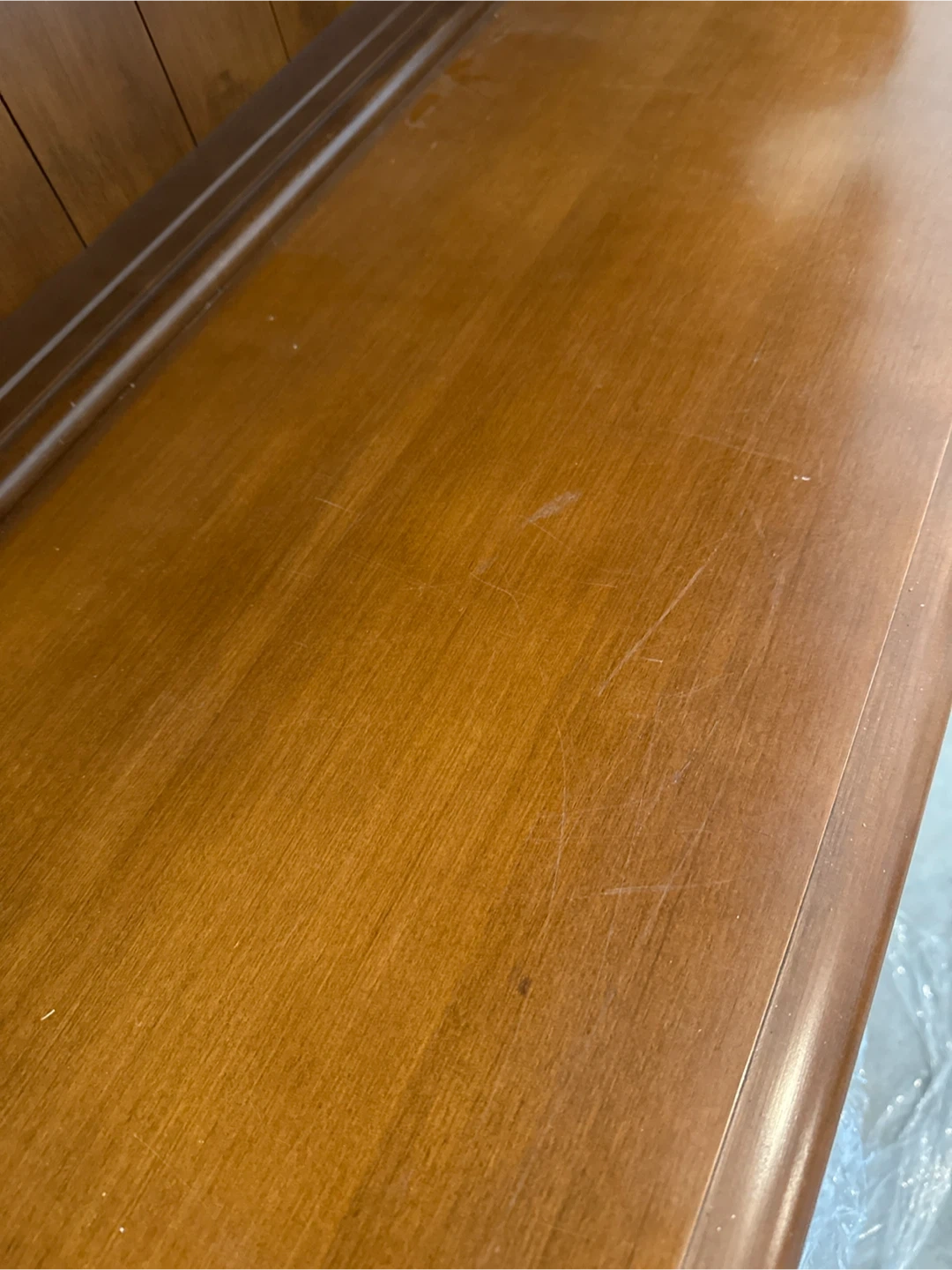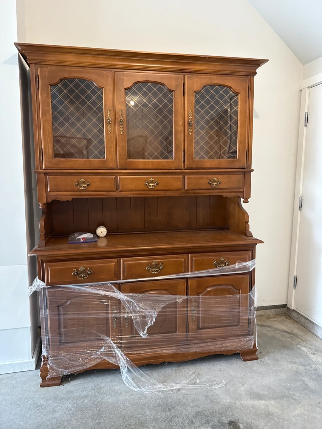 Selling a vintage hutch, perfect for adding a touch of classic charm to your dining or living area. It's a beautiful piece with ample storage space. There are some visible scratches on the surface.