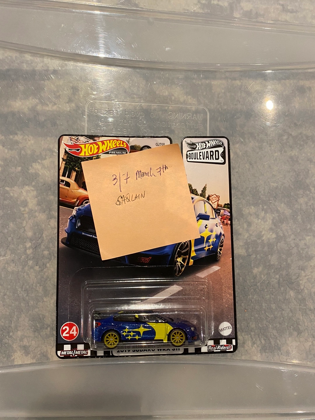 Hot Wheels Premium Real Riders diecast car. 2017 Subaru WRX STI. Number 24 of 24. Part of the Boulevard series. 30$ Firm