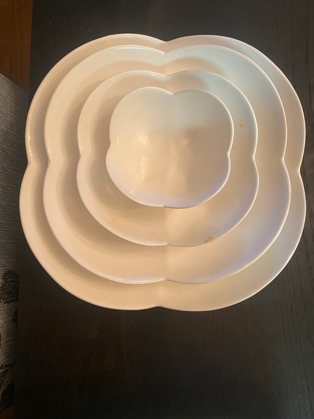 Flameless candles - 10.00 Rocking chair - 20.00 Shell collection - 10.00 Weights - 5.00 Egg plate - 5.00 Nesting bowl set - 10.00 Bakewear -20.00 Pots - 40.00 12 glasses - 10.00