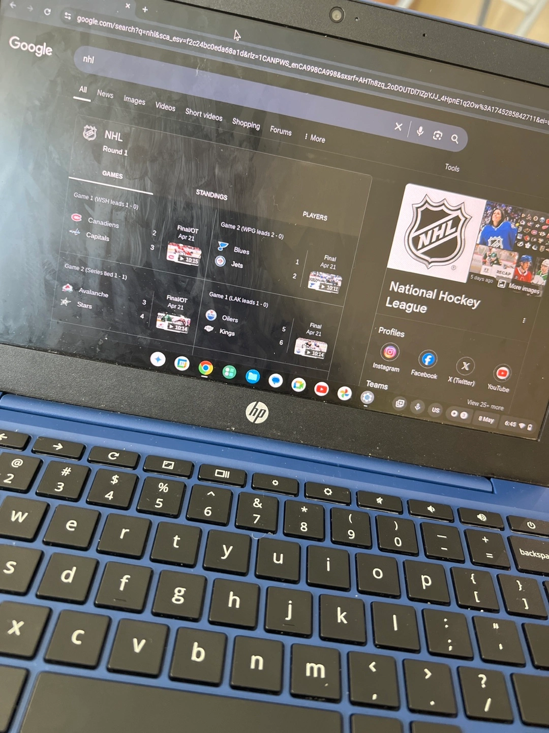 Blue HP Chromebook. 11-inch screen. Chrome OS. Excellent condition.