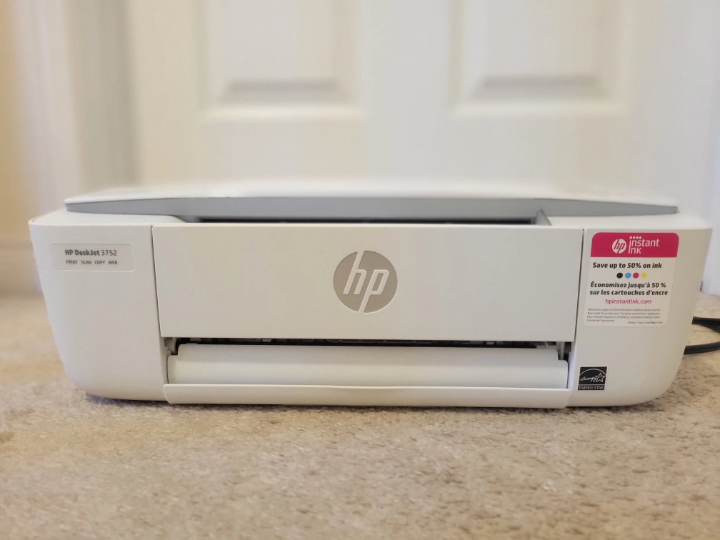 Selling a used HP DeskJet 3752 printer in white. It's a print, scan, copy, and web printer. Perfect for home or small office use! Used like new