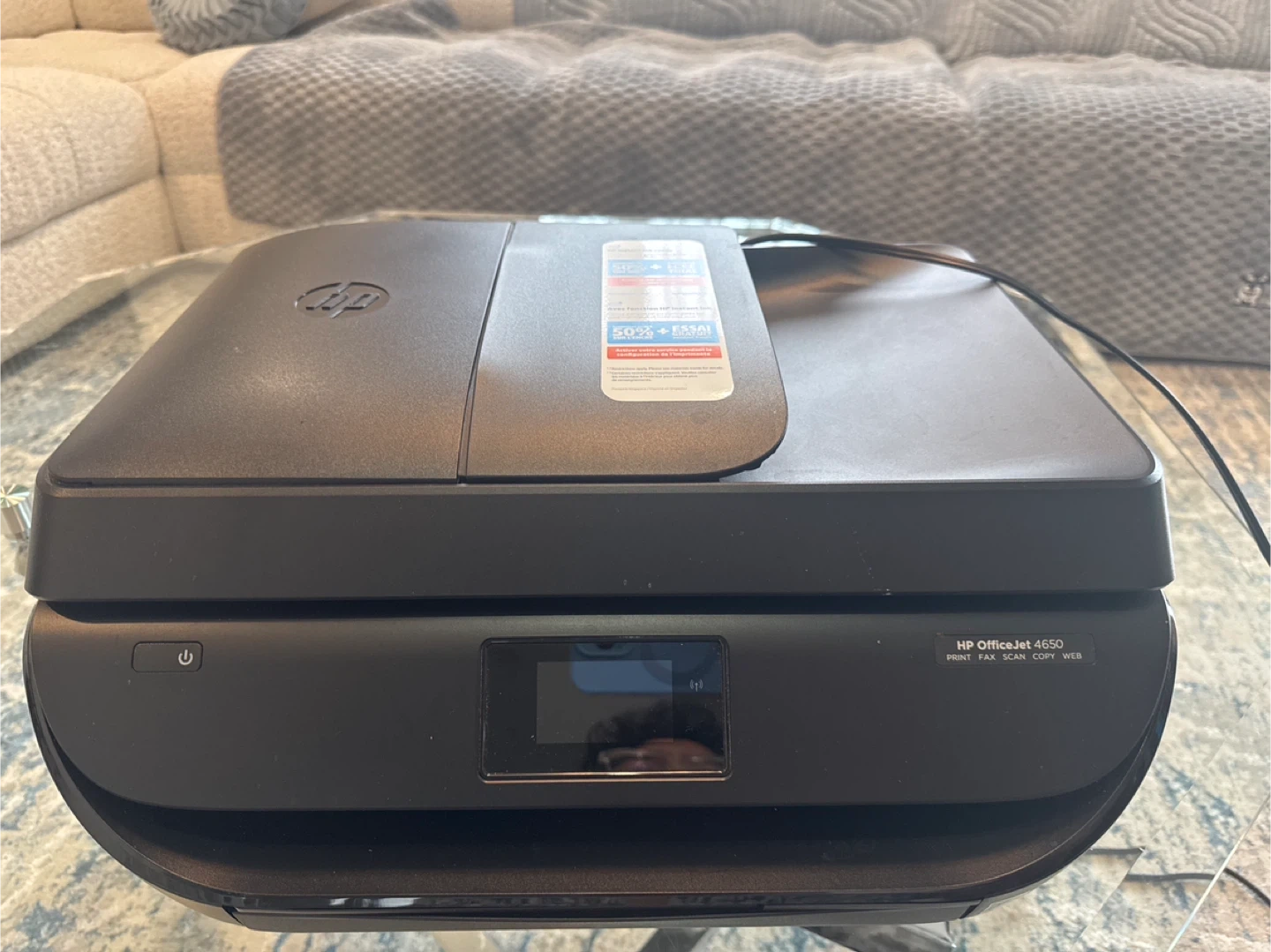 Selling an HP OfficeJet 4650 all-in-one printer! It can print, fax, scan, copy, and connect to the web. Great for home or small office use