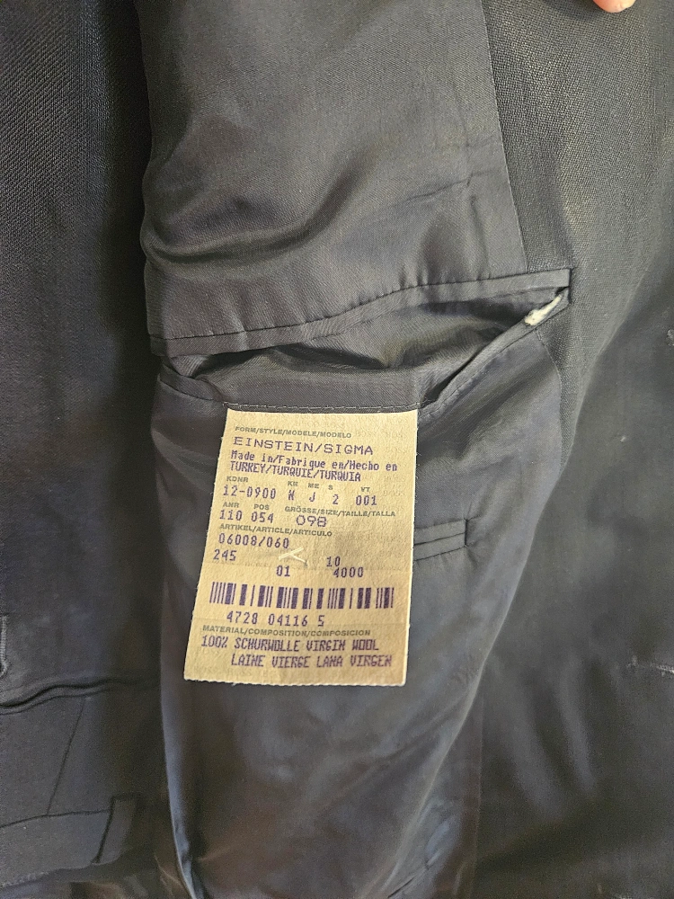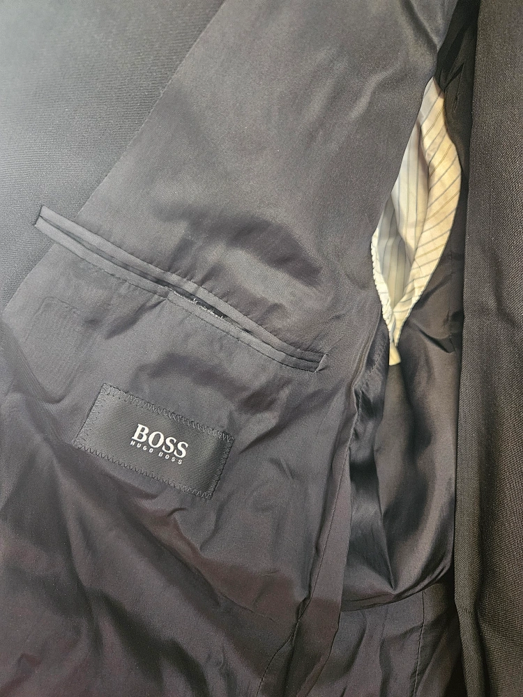 Selling a Hugo Boss men's suit. The material is 100% Schurwolle Virgin Wool. Made in Turkey. Pants measure a 36" waist and the jacket is 42" in the shoulders. In excellent condition. No stains/rips. Smoke free home.