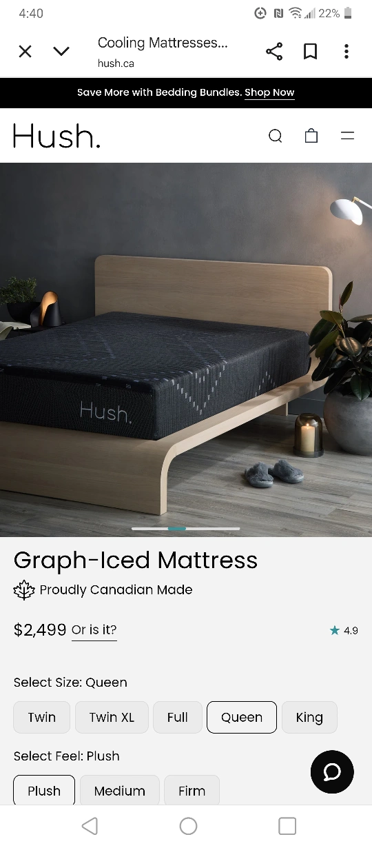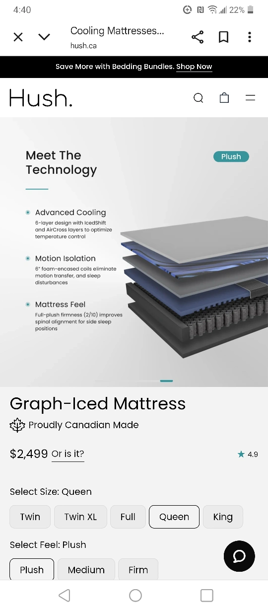 Selling a Hush Graph-Iced mattress in queen size. It's proudly Canadian made! This mattress features advanced cooling with a 6-layer design using IcedShift and micro layers to optimize temperature control. It also offers motion isolation with 6" foam-encased coils to eliminate motion transfer and sleep disturbances. The mattress feel is plush, improving spinal alignment for side sleepers I have a hardly used queen size "HUSH" brand mattress and ikea bedframe i dont need anymore asking $1500 obo Mattress is plush-medium. Very comfortable. Pick up only in Northgate area No bugs, No smoke, Cat friendly.