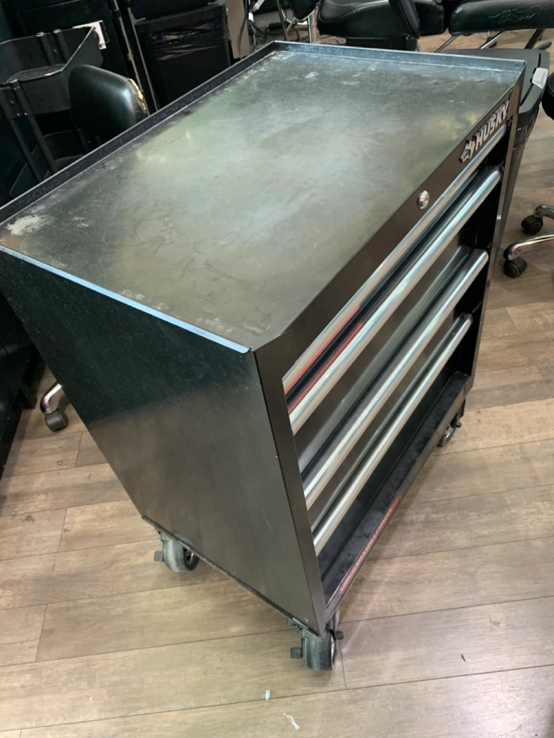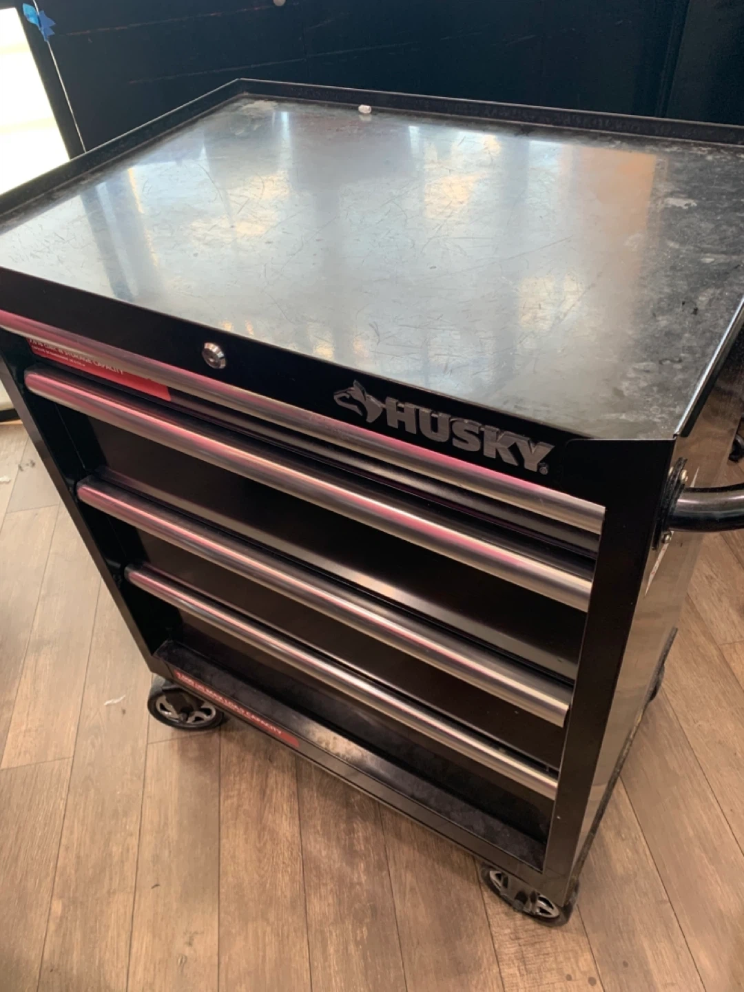 Selling a Husky rolling tool cabinet. It features multiple drawers for organized storage and is on wheels for easy mobility. Great for a garage or workshop! Sorry. No keys available.