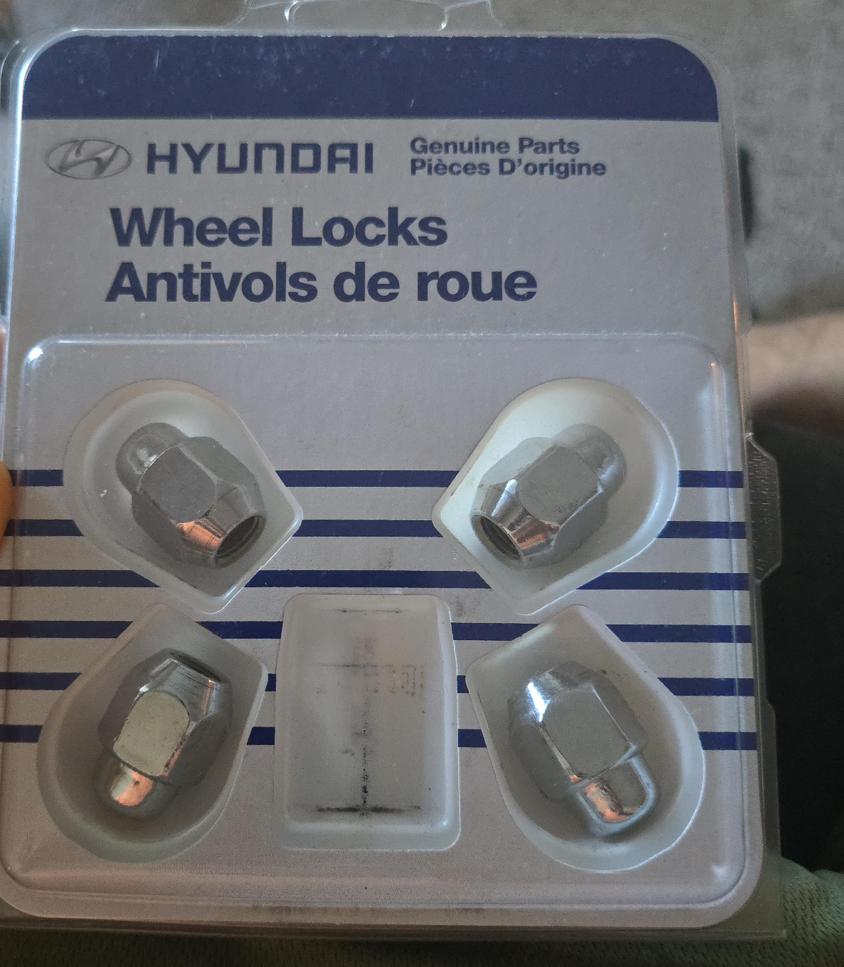 Selling a brand new set of Hyundai wheel locks. These are genuine Hyundai parts, still in the original packaging.