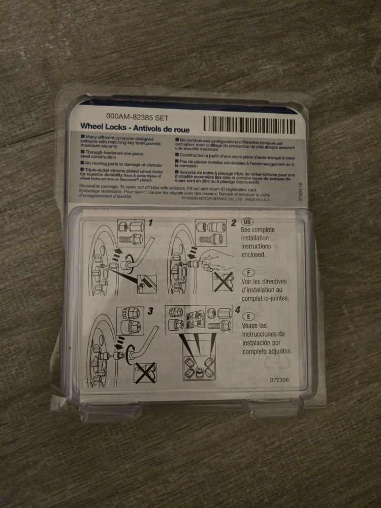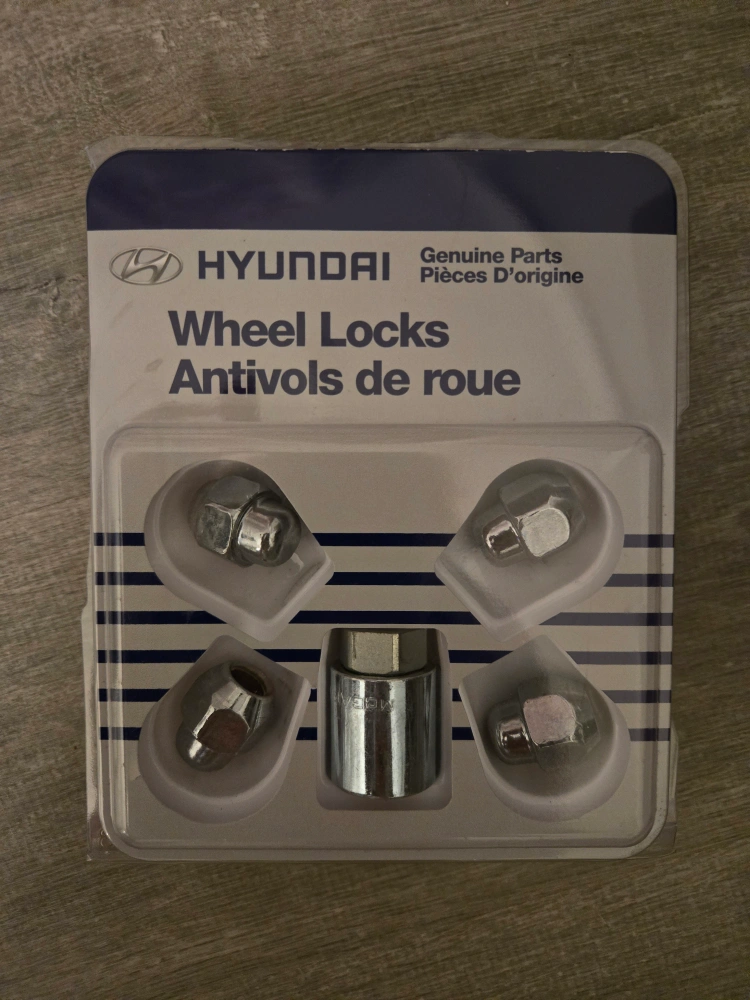Selling a set of Hyundai wheel locks. They are genuine Hyundai parts and come in the original packaging. These wheel locks are designed to prevent theft and are easy to install. Keep your wheels safe and secure! Asking $35.00 Received when I purchased my Hyundai Elantra and never used Hyundai Retail $69+tax