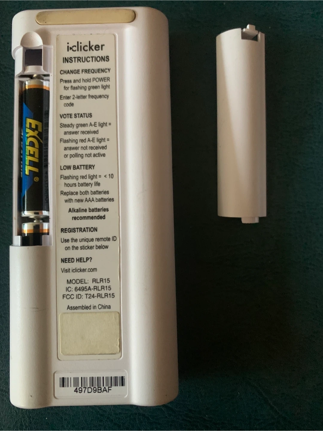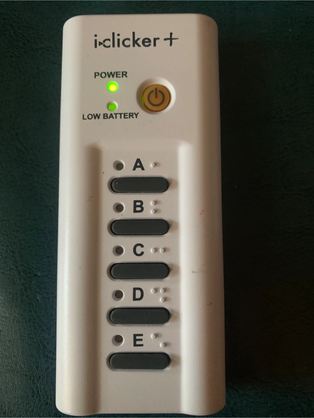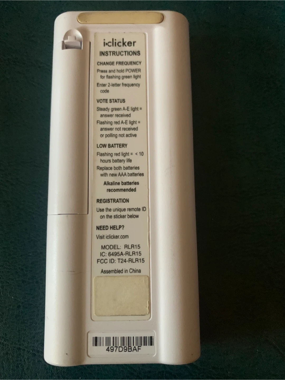 Selling an i-Clicker+ PLR15 remote. It's in good working condition. It uses 2 AAA batteries, and the instructions are printed on the back for easy reference. Great for classroom or presentation use!