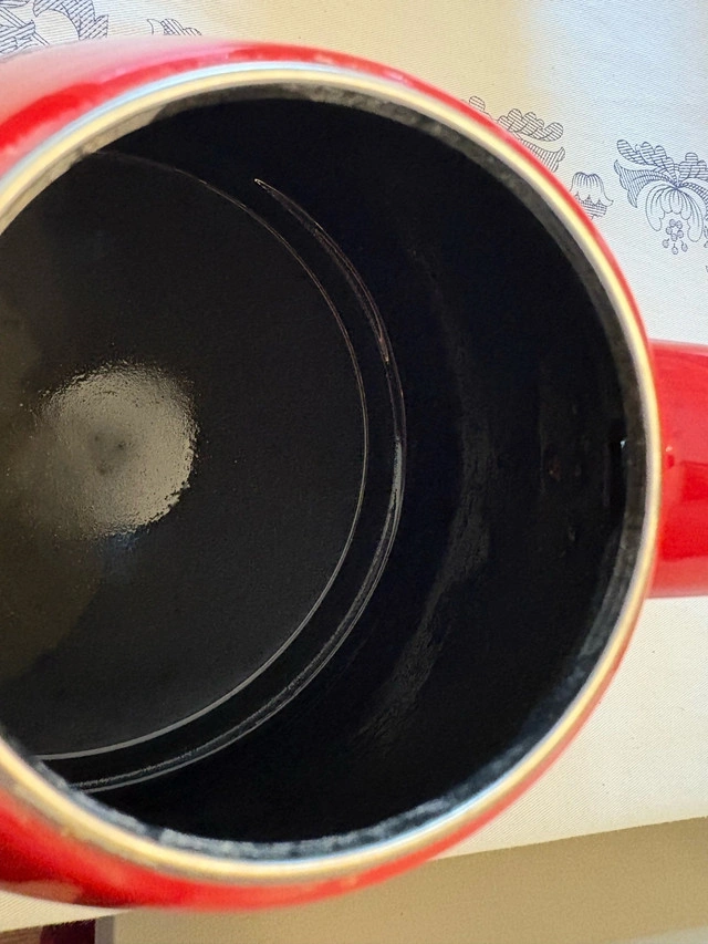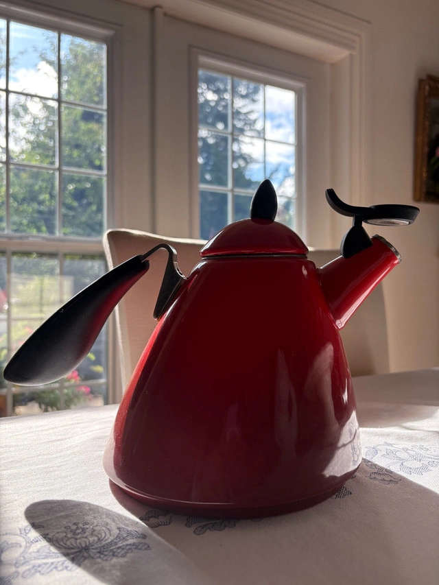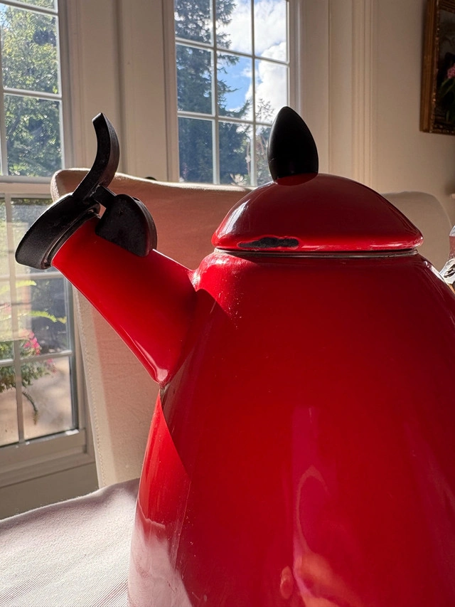Brew cozy cups of tea for your guests this Thanksgiving with this classic Le Creuset whistling kettle — perfect for chilly October evenings. Known for its premium quality and classic French design, this kettle is both functional and beautiful — the perfect addition to any kitchen. Product Details: Brand: Le Creuset Model: Ogive Tea Kettle Color: Cherry Red (High-gloss enamel finish) Condition: Excellent overall — slight chip on lid, otherwise perfect! Features: - Heat-resistant ergonomic handle - 1.6 L capacity - Whistling spout for convenience - Durable enamel-coated steel construction ⭐ Why You’ll Love It: Le Creuset is renowned for its craftsmanship and durability, and this kettle delivers on both. Its vibrant red hue adds a pop of color to your kitchen while offering long-lasting performance — ideal for everyday brewing or display on open shelving. Price: $60 (Retail ~$130) Pickup in Thornhill / Local Delivery Available