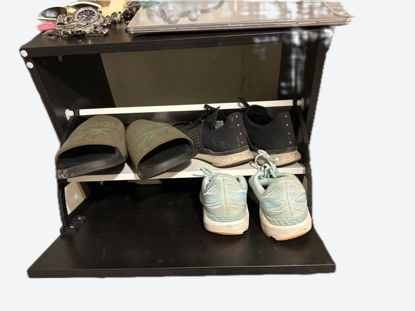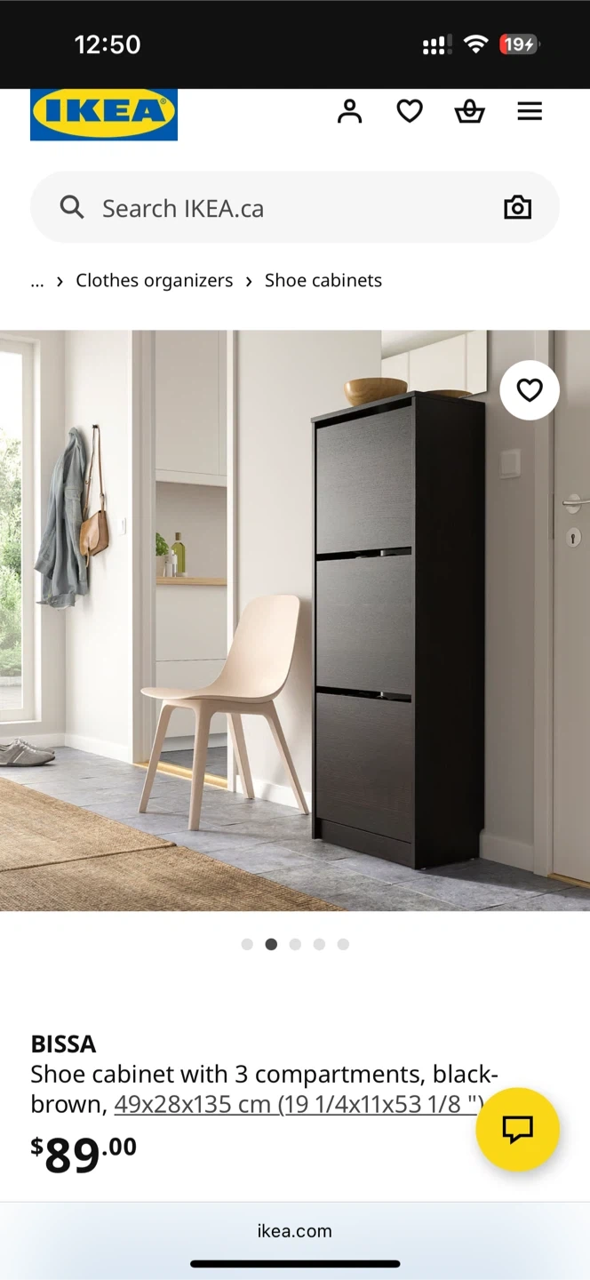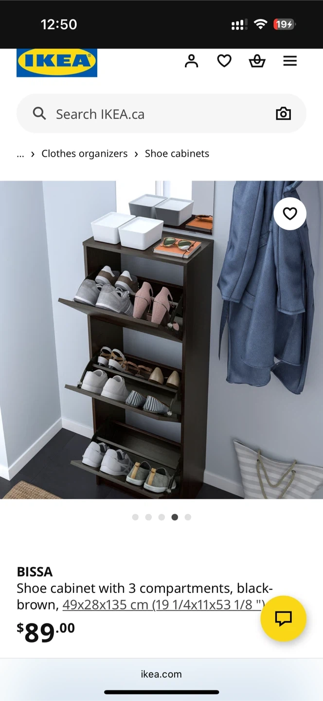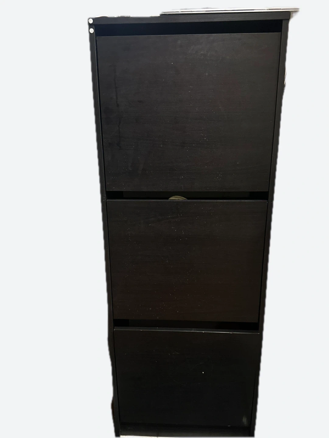 Selling a BISSA shoe cabinet from IKEA in black-brown. It features three compartments for storing your shoes. The dimensions are 49x28x135 cm (19 1/4x11x53 1/8 "). Originally bought for $89