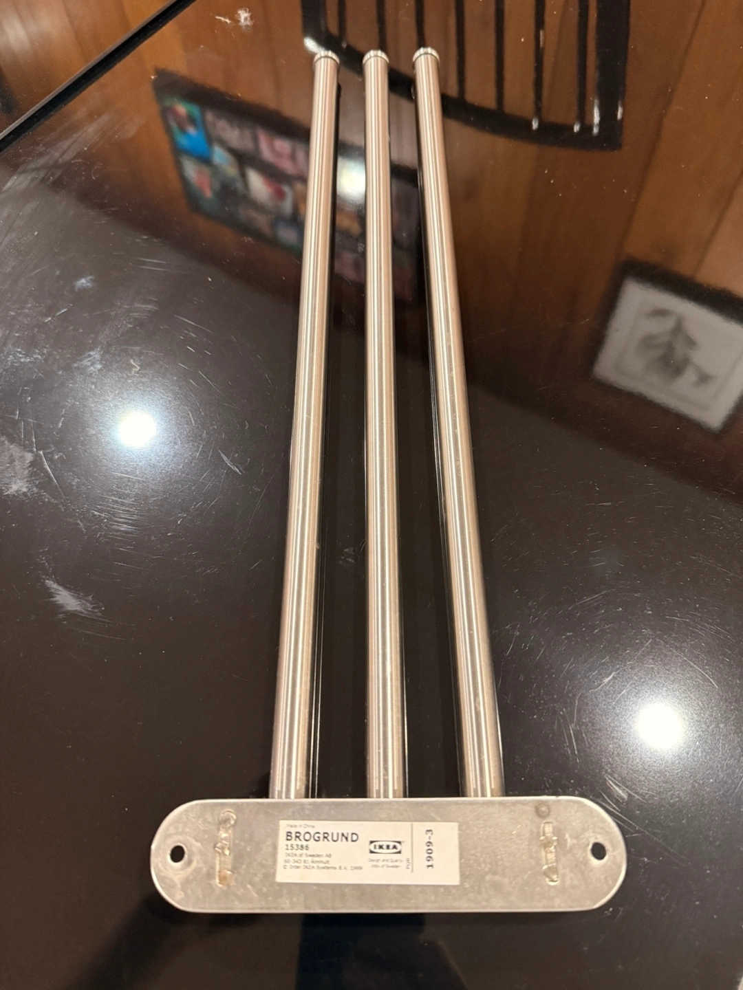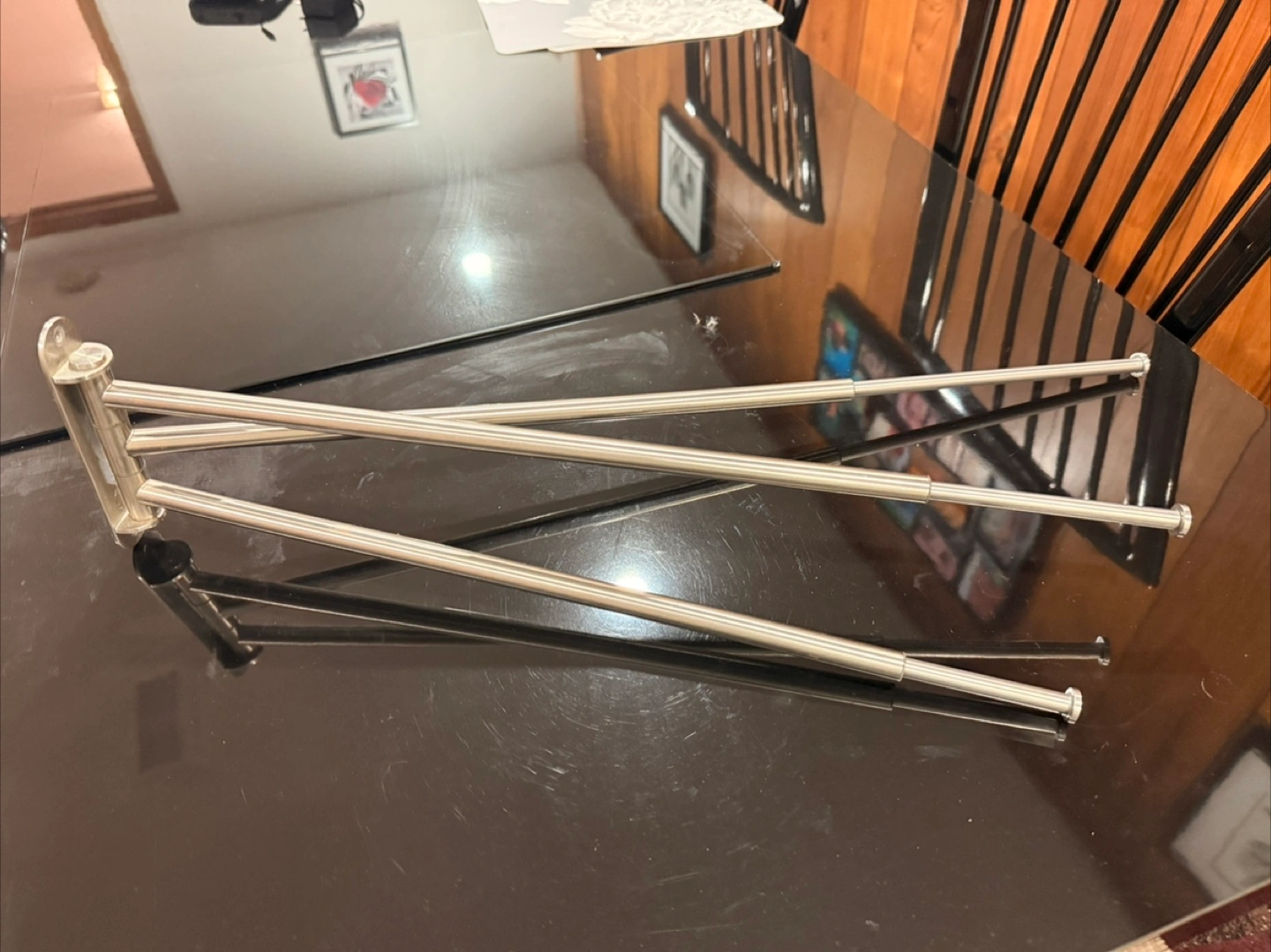 Stainless steel triple towel rail. 60 cm long. Wall mounted. Excellent condition.