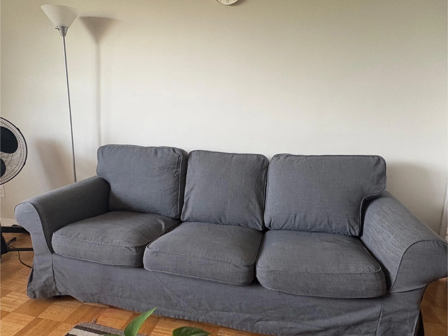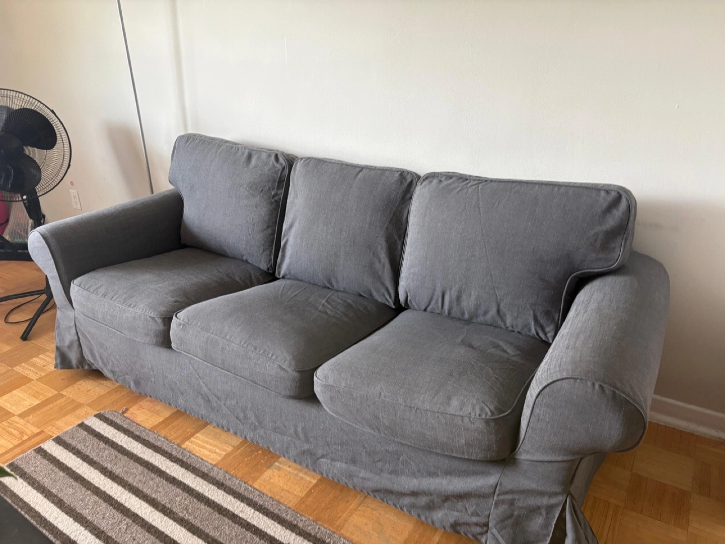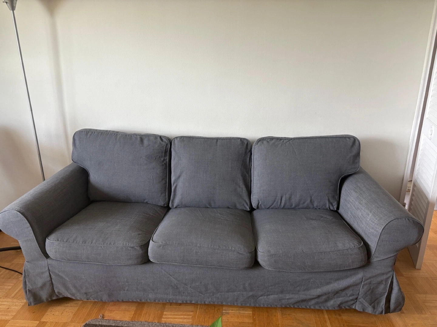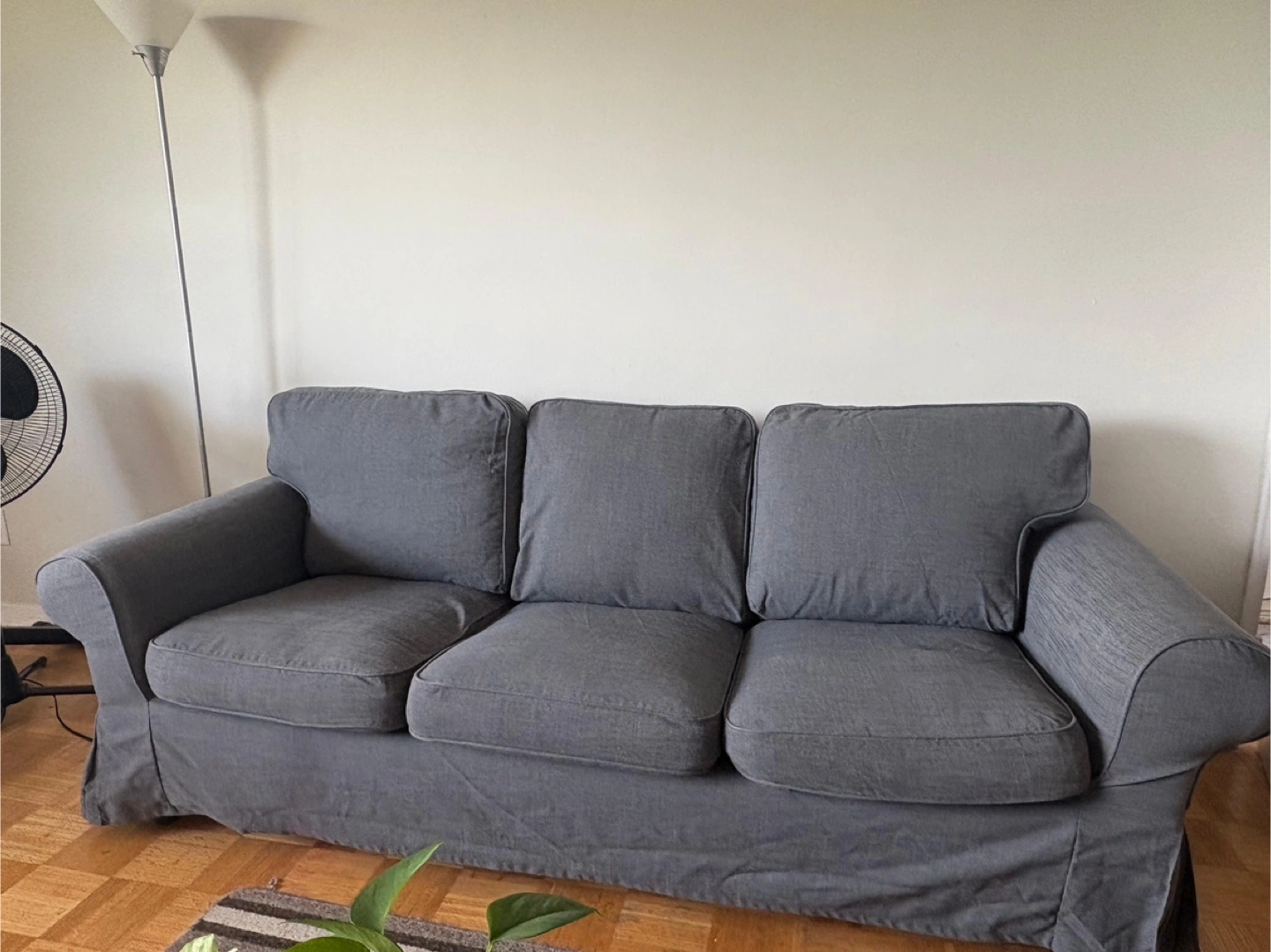 Selling a used IKEA Ektorp 3-seat sofa. It's in good condition and ready for a new home! This sofa is known for its comfortable seating and classic design. Perfect for any living room or family space. Selling because we are moving out.