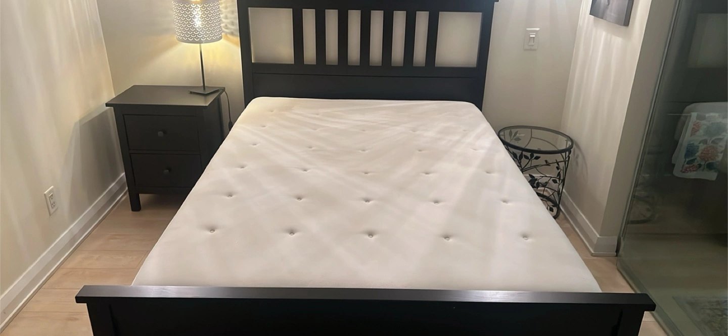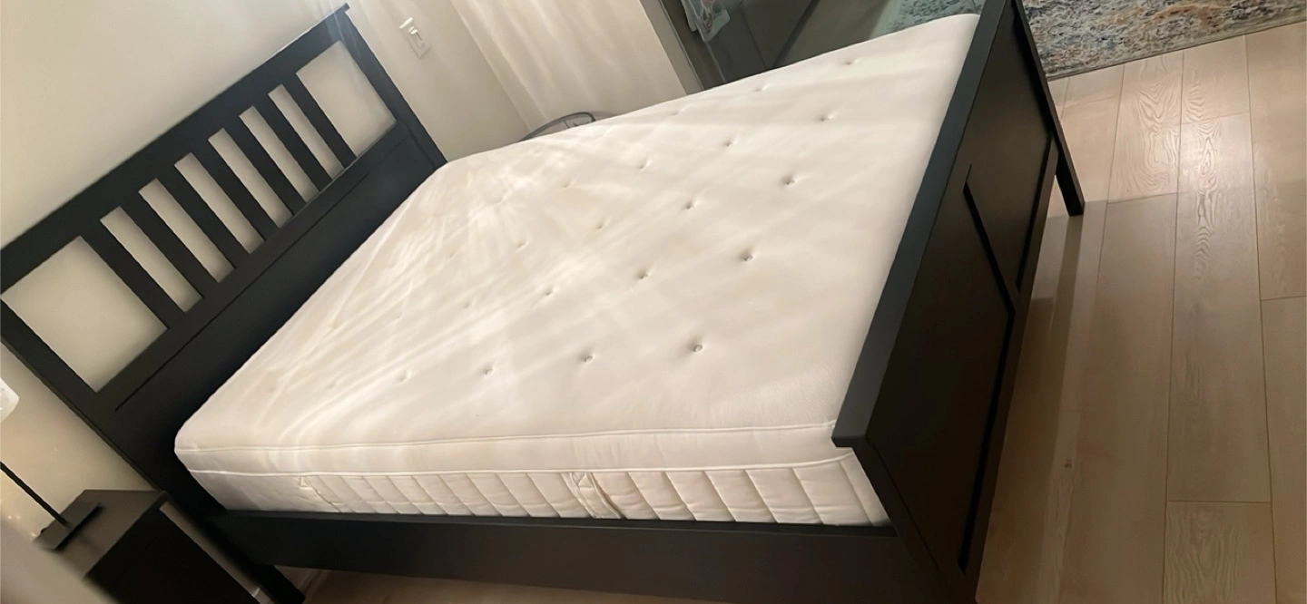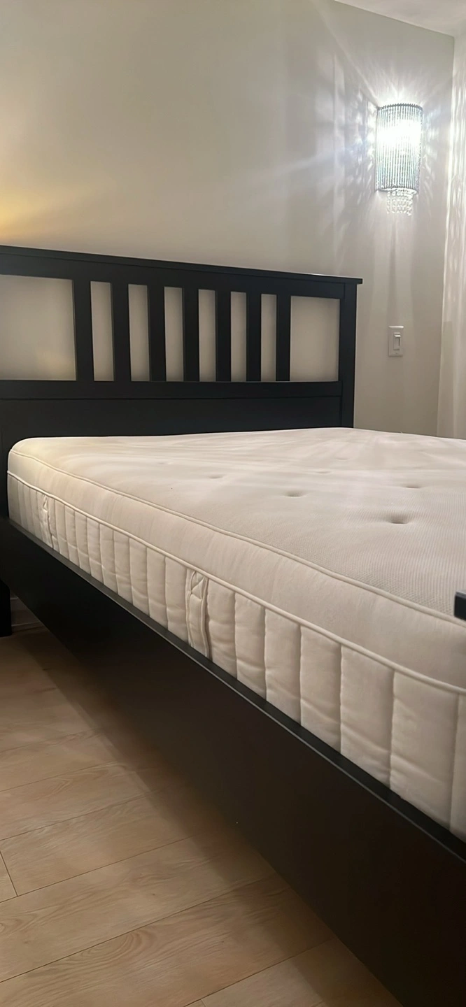 Originally purchased for $599 from IKEA. Lightly used, was placed in a protective mattress cover and under mattress topper so condition is practically new. Smoke-free, pet-free household. Pick up only.