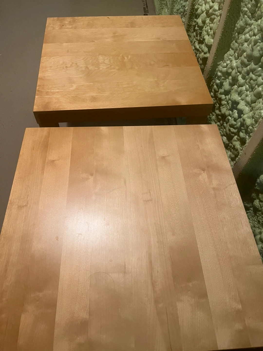 Selling a set of two IKEA side tables. They're in a light wood finish and perfect for any room! Great for small spaces, as bedside tables, dorm rooms and just starting out. They’re sturdy and easy to assemble