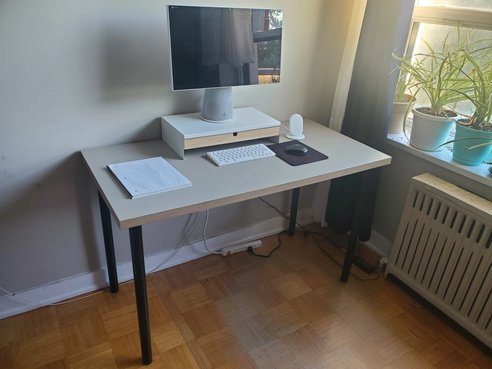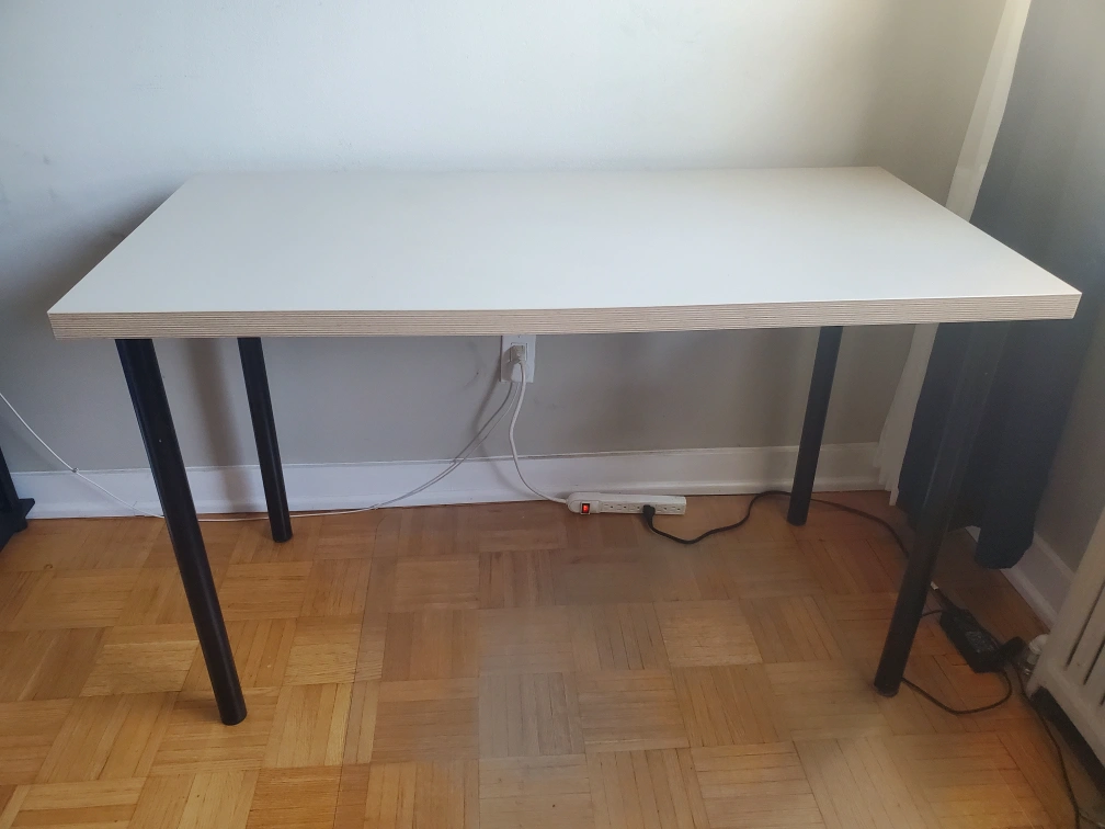 Selling an IKEA LAGKAPTEN / ADILS desk! It's in good condition and perfect for a home office or study space. The desk has a off-white top with black legs. It measures 120x60 cm (47 1/4x23 5/8 ")