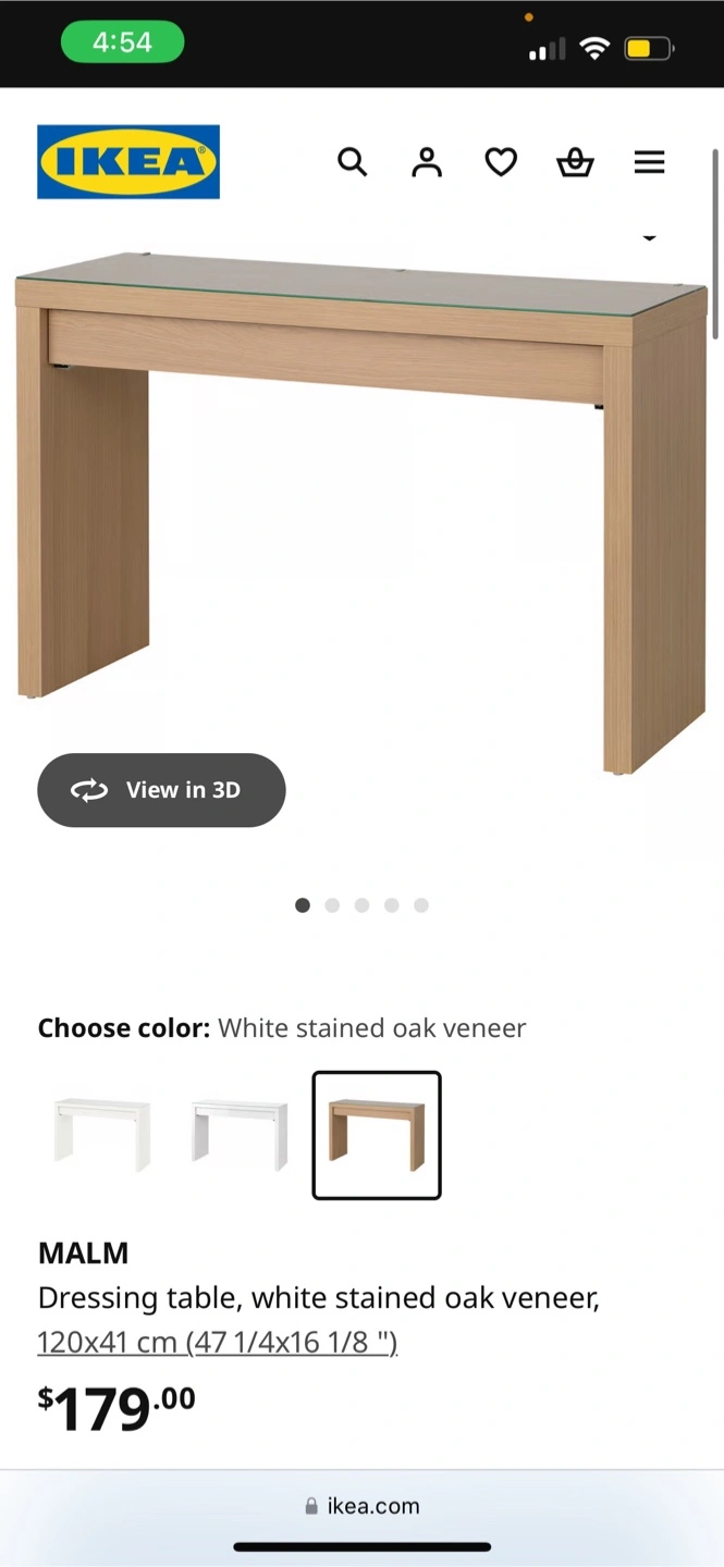 Selling an IKEA Malm dressing table in white stained oak veneer. It measures 120x41 cm (47 1/4x16 1/8 "). Originally bought for $179. It's a great addition to any bedroom or dressing area!