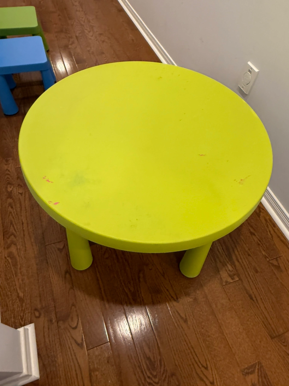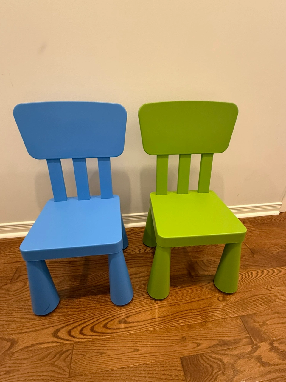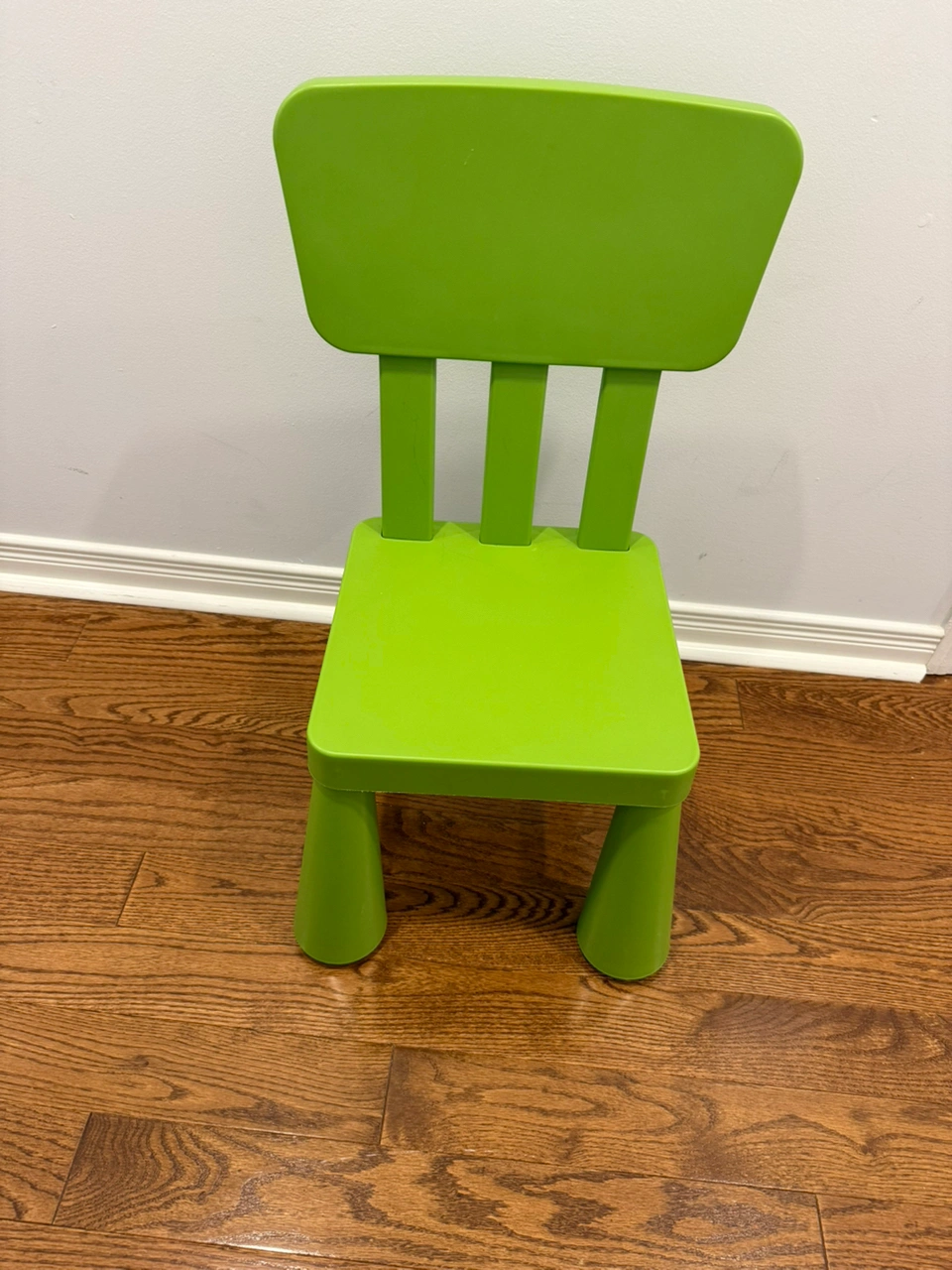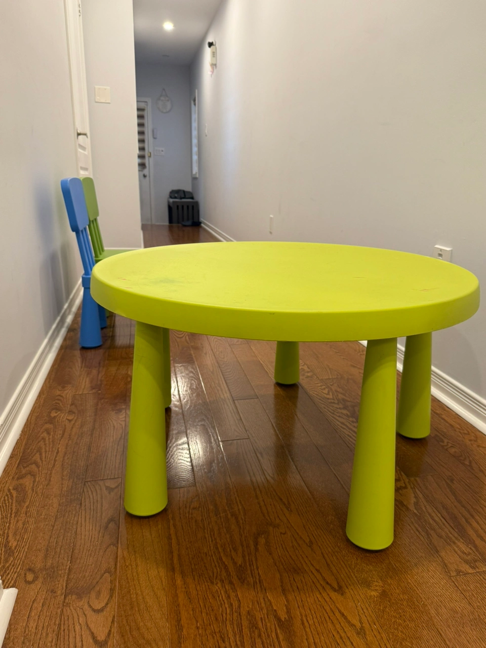 Ikea Mammut Children’s table and 2 chairs. Used, in good condition.