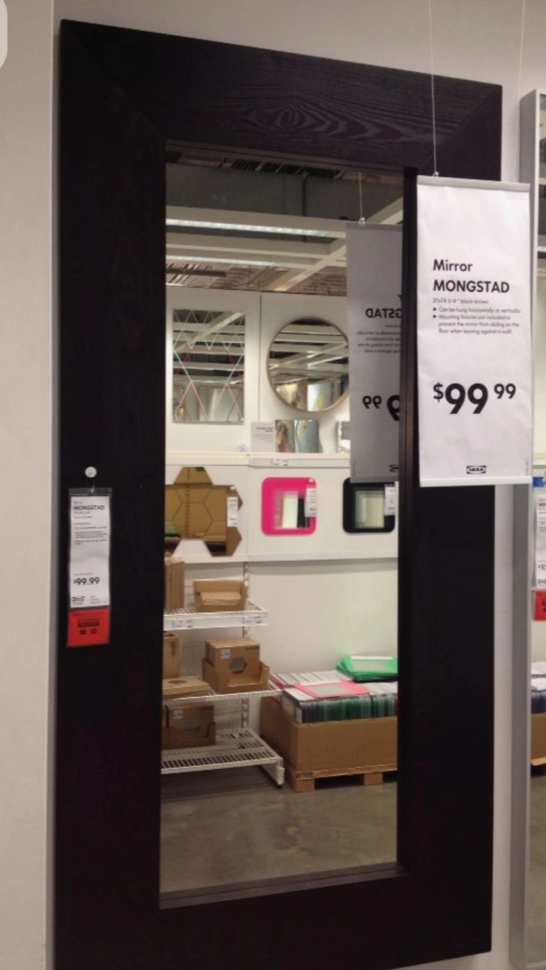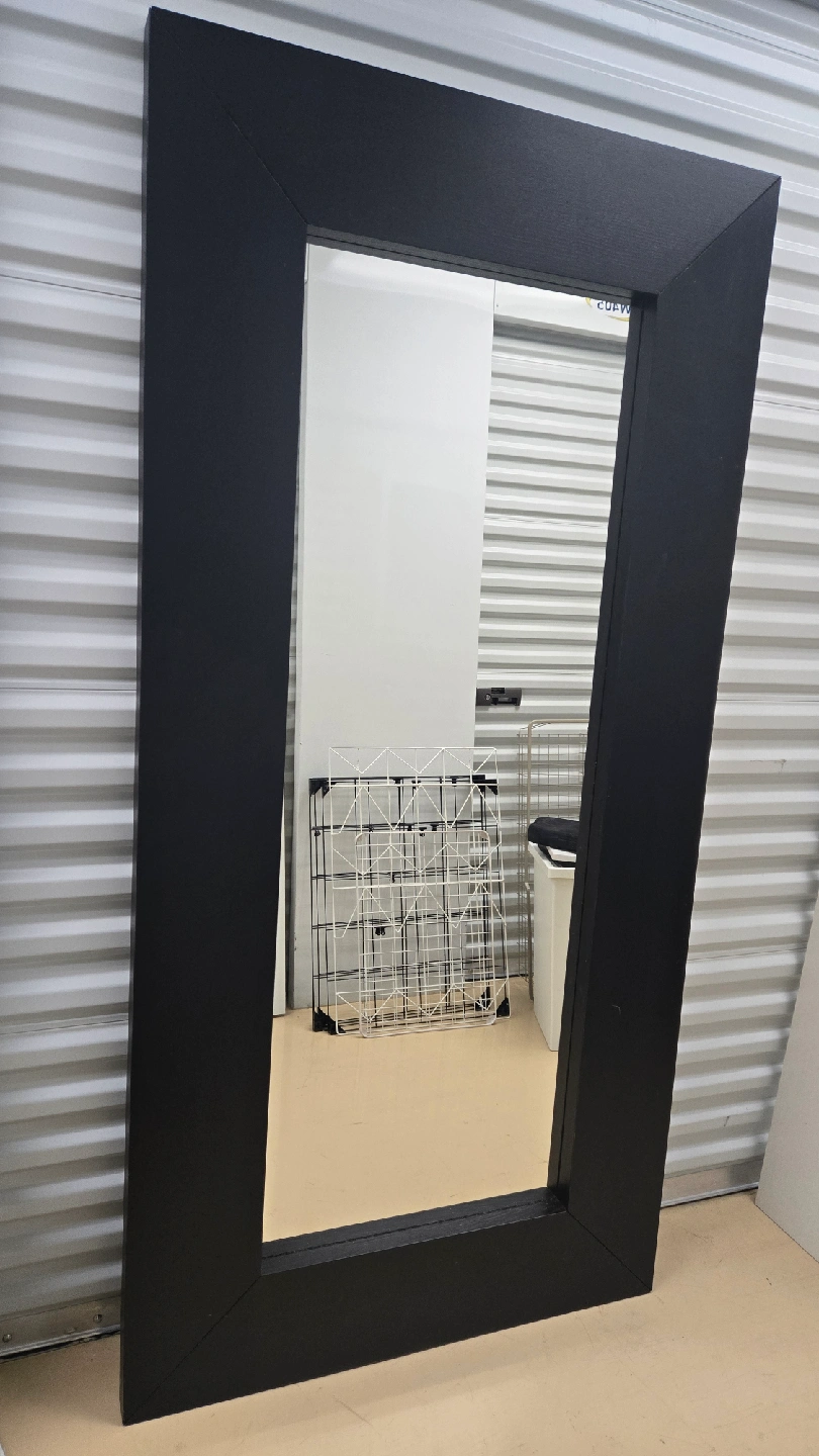 Selling a black IKEA Mongstad mirror! It can be hung horizontally or vertically. Overall Dimensions: Width: 37 inches, Height: 74.75 inches, Depth: 2 inches. Bought for $99.99.