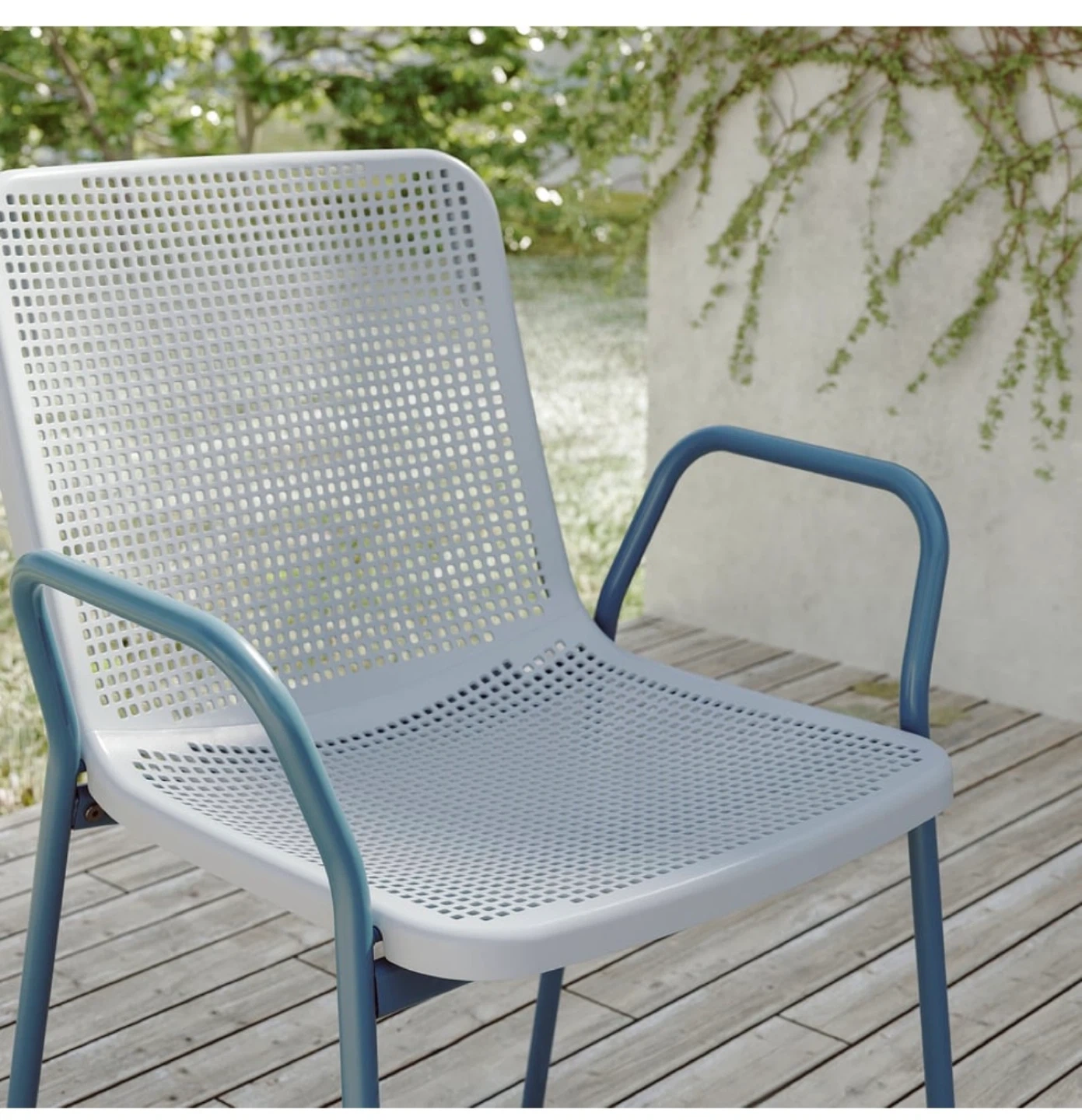 Selling an IKEA NÄMMARÖ armchair perfect for outdoor use! It's in light grey and the dimensions are approximately 54cm x 55cm seat, with a height of 80cm. It's a stylish and comfortable addition to any patio or garden