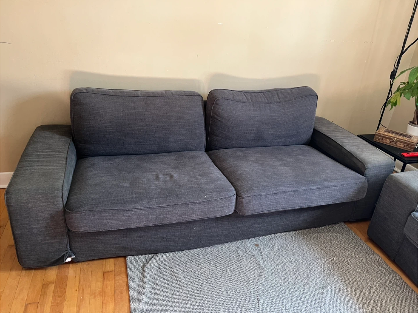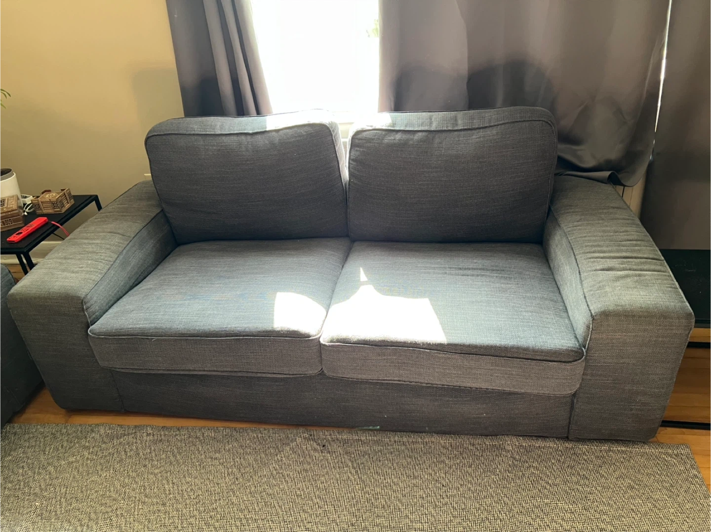 Selling a gently used IKEA Soderhamn 2-seat sofa in grey. It's in good condition and super comfy for lounging. This sofa is known for its deep seats and soft, supportive cushions. It's perfect for a living room or den. The covers are removable and washable, making it easy to keep clean
