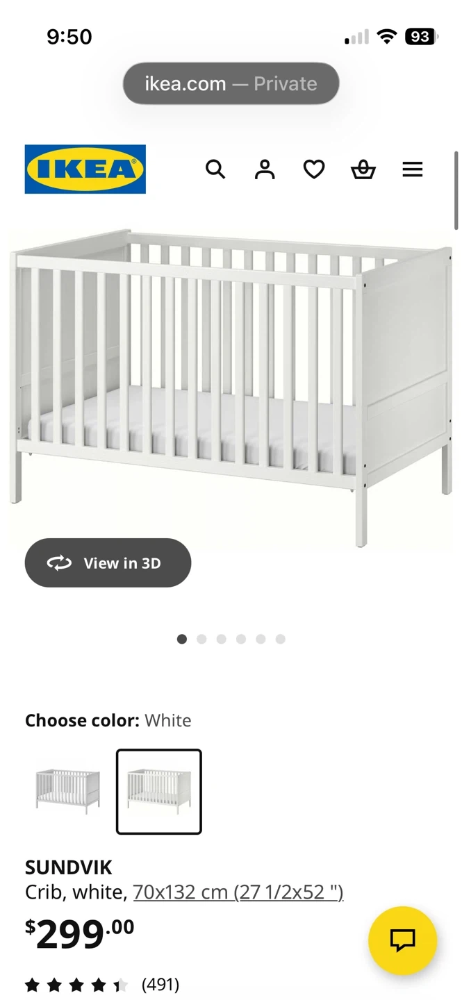 Selling an IKEA Sundvik crib in white! It's sized at 70x132 cm (27 1/2x52 "). Originally bought for $299 Will be in parts for easy collection.
