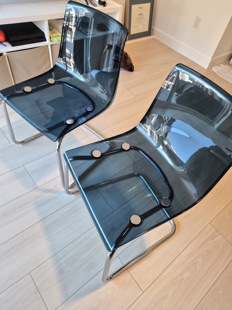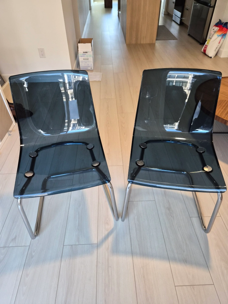 Selling a pair of IKEA Tobias chairs in smoked grey! They're in great condition and would look great in any dining room or office space. Originally bought for $125 each. $45 each or $80 for 2